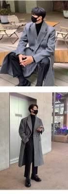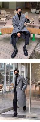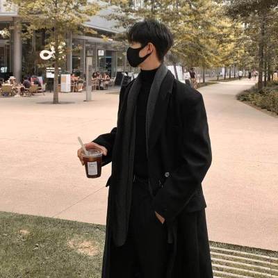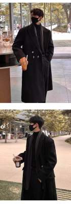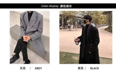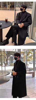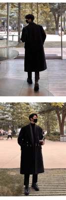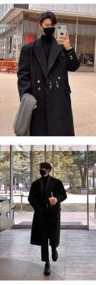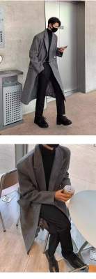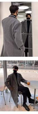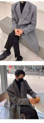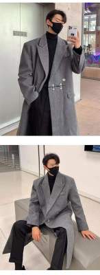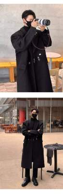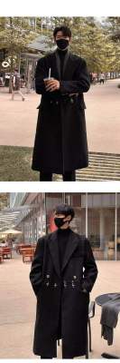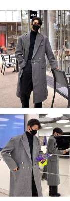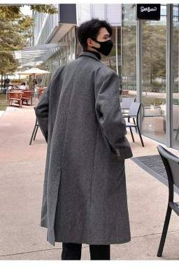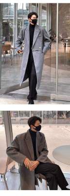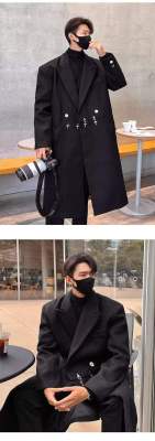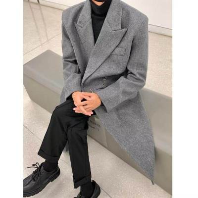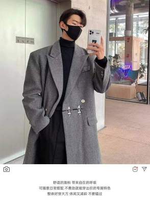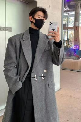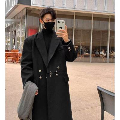 Metal airplane button woolen coat for men in autumn and winter, thickened, high-end, handsome windbreaker, mid-length casual woolen coat