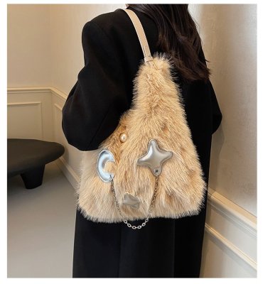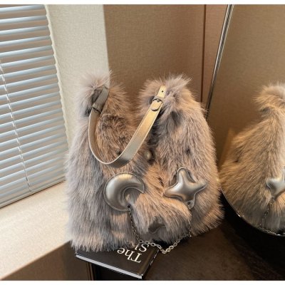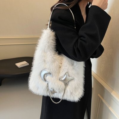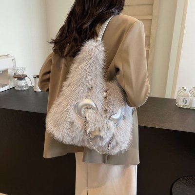 Cross-border super popular large-capacity furry shoulder bag women's new high-quality versatile plush armpit tote bag