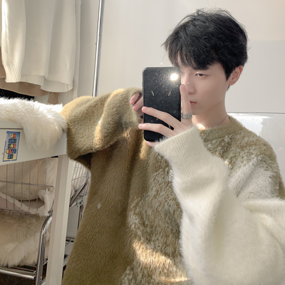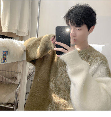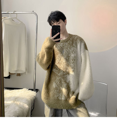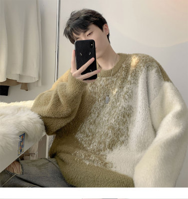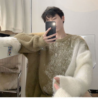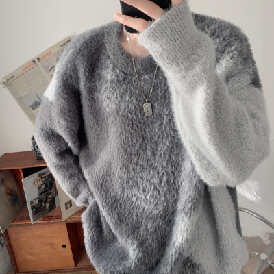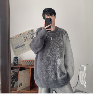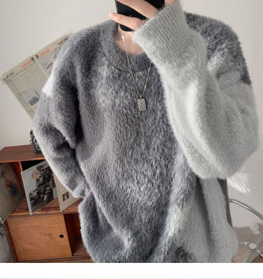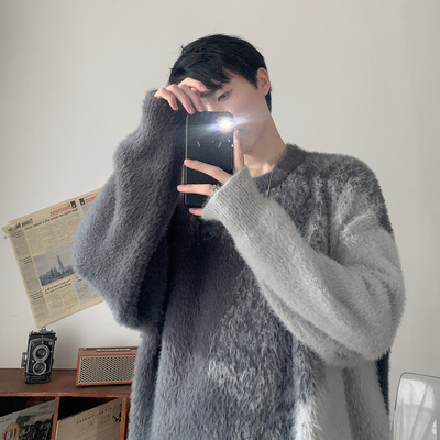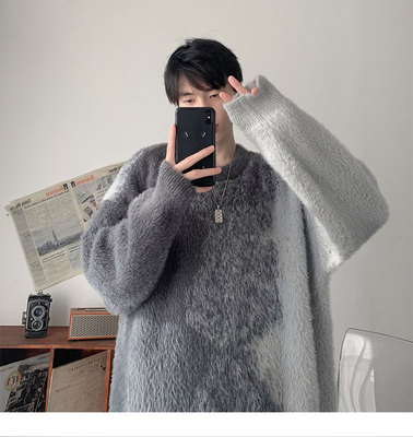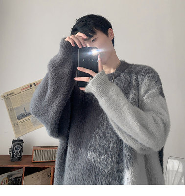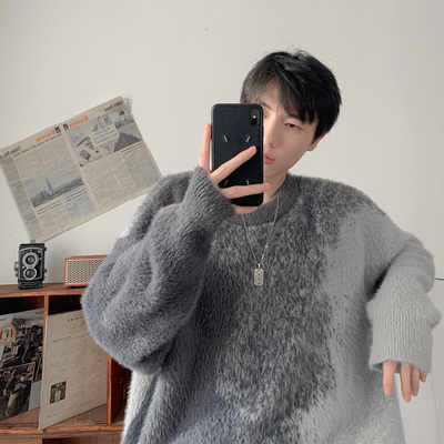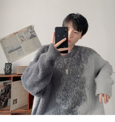 Trendy gradient mink crew neck sweater