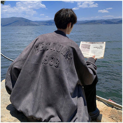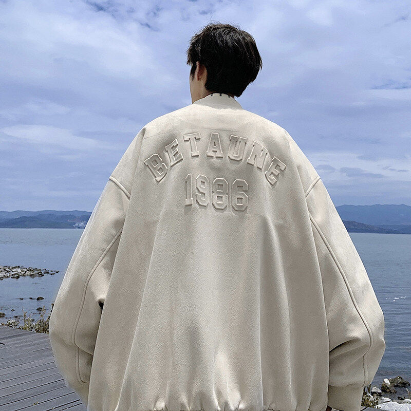 Heavy duty stenciled suede baseball jacket