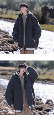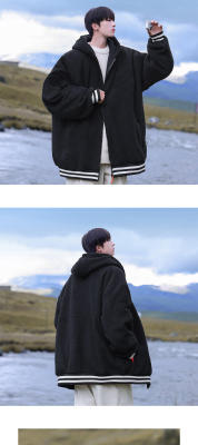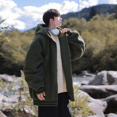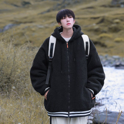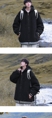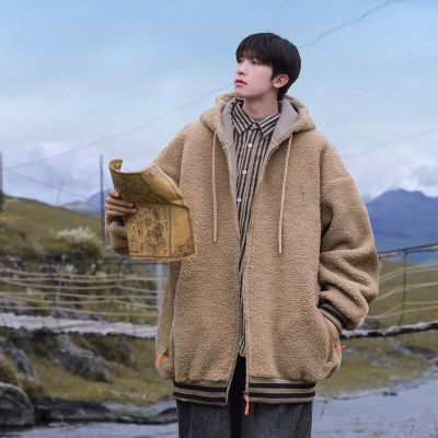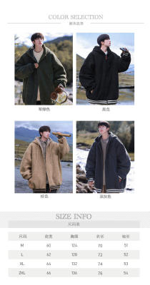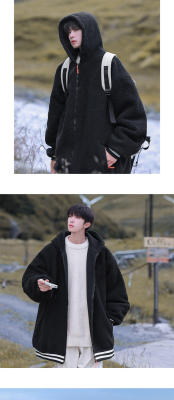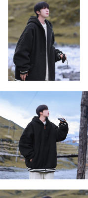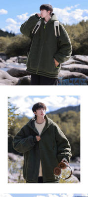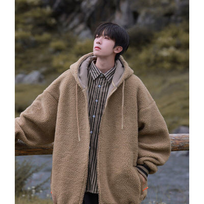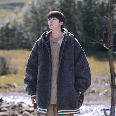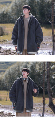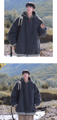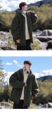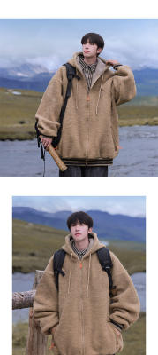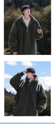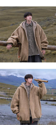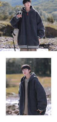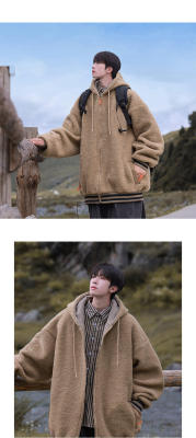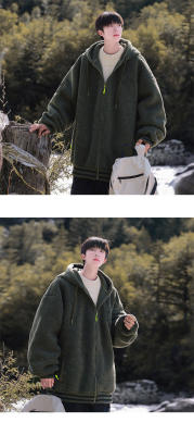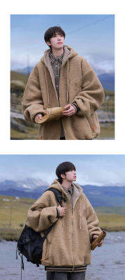 Winter casual solid color lambswool cardigan hooded coat