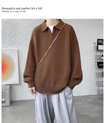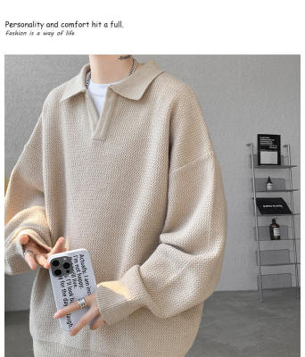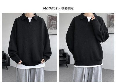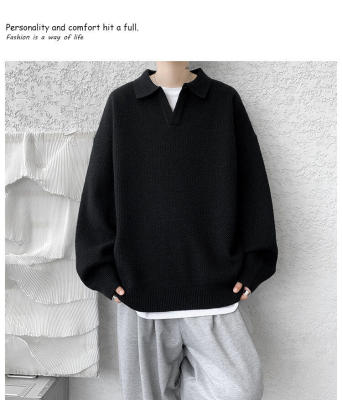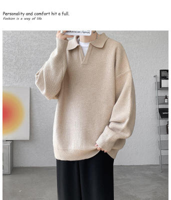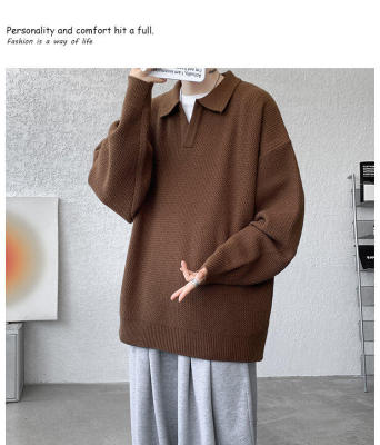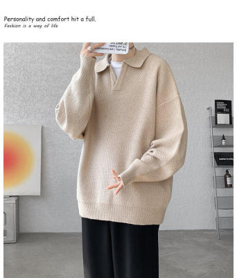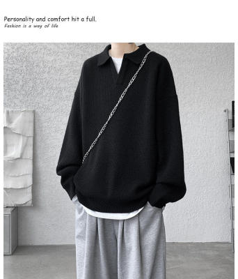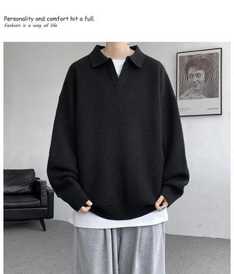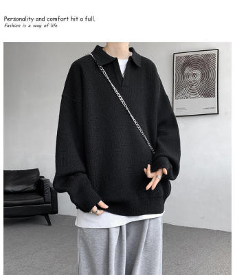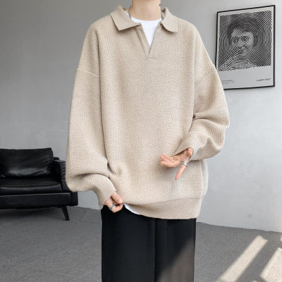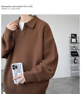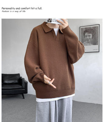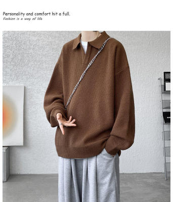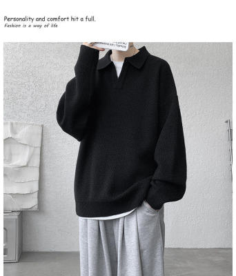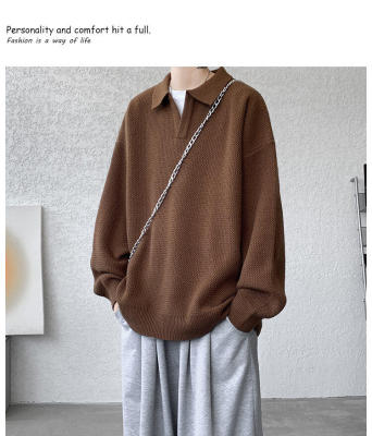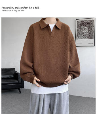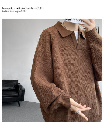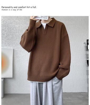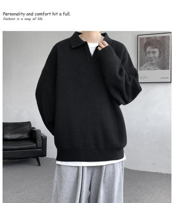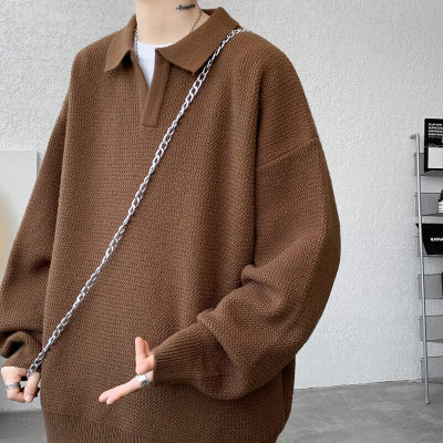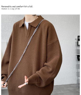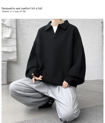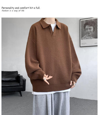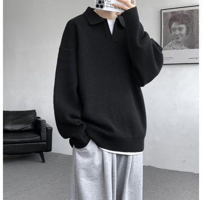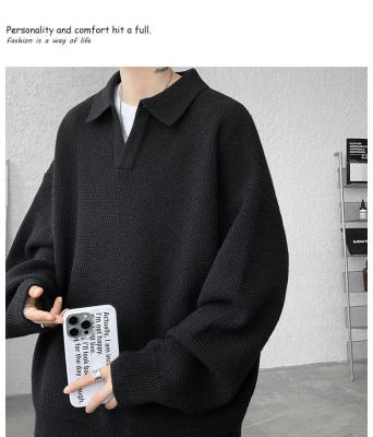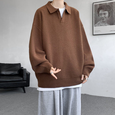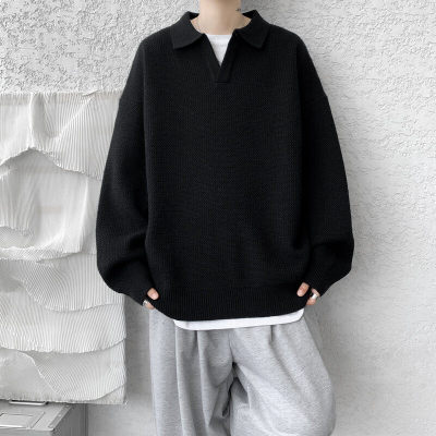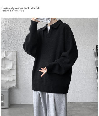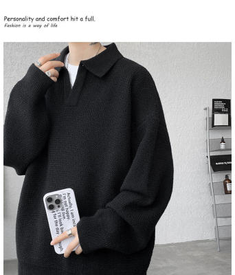 Lapel sweater, large size, light mature style, retro solid color pullover top, knitted bottoming shirt