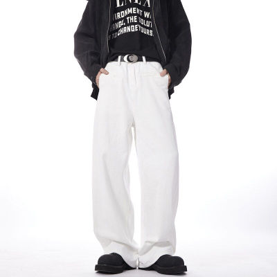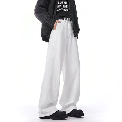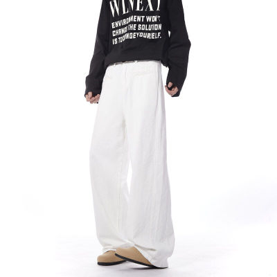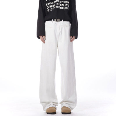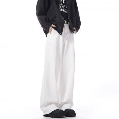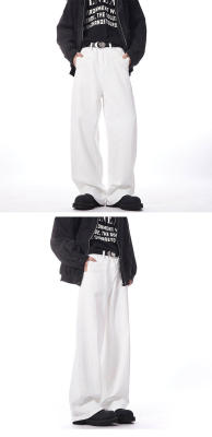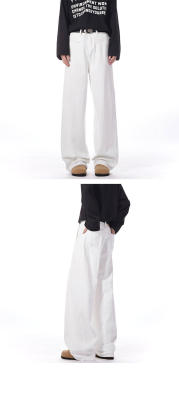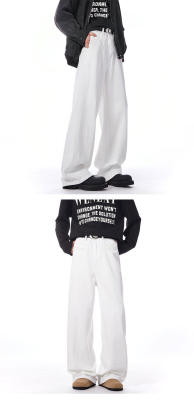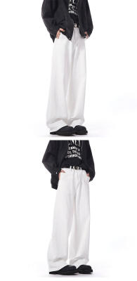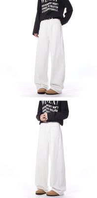 Autumn and winter white jeans with straight scimitar draping