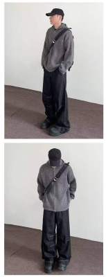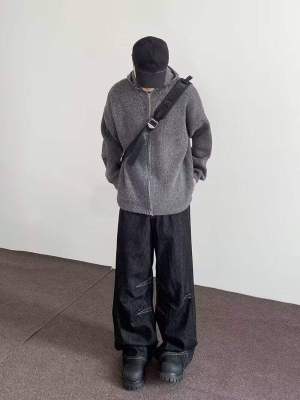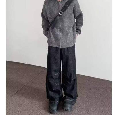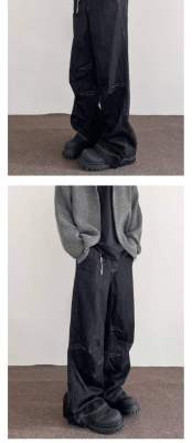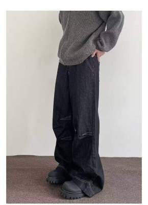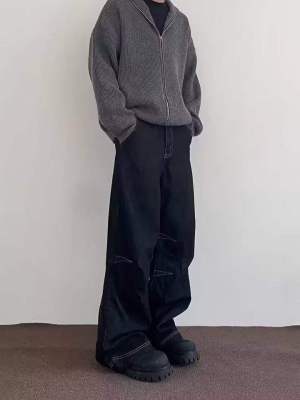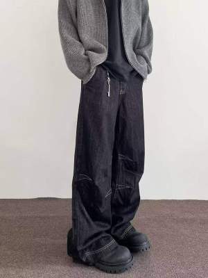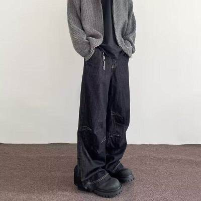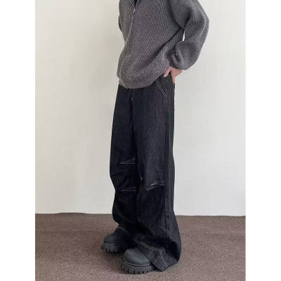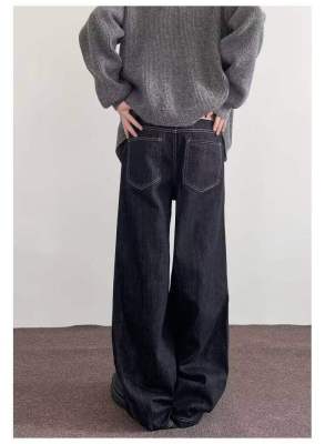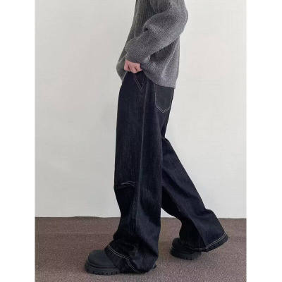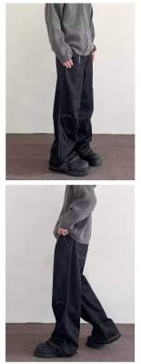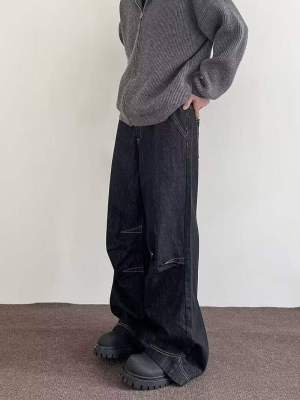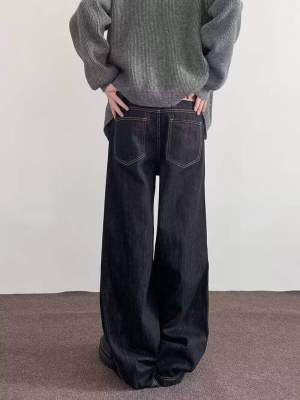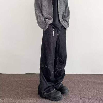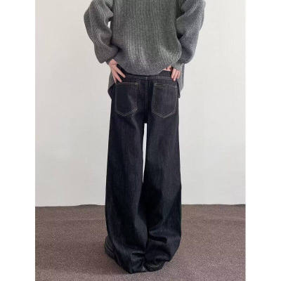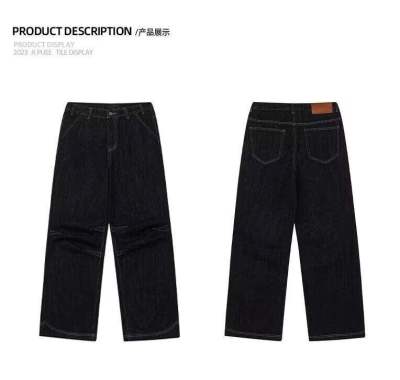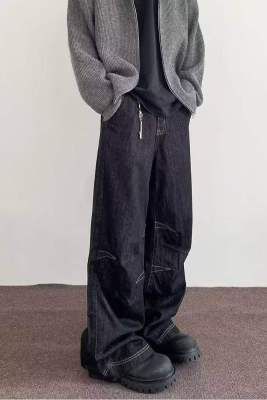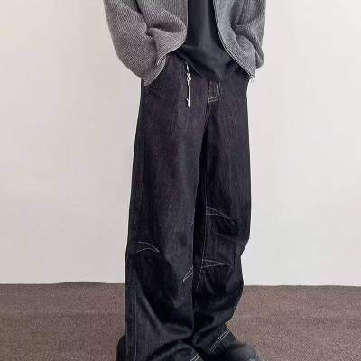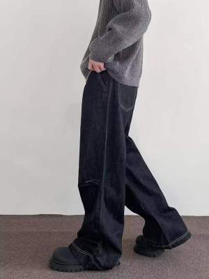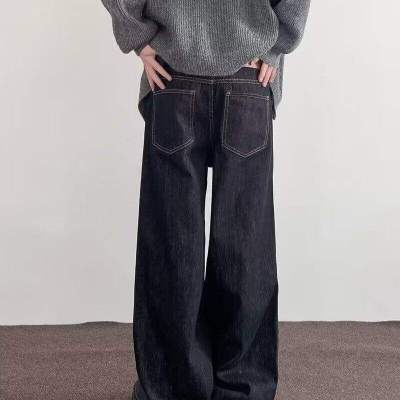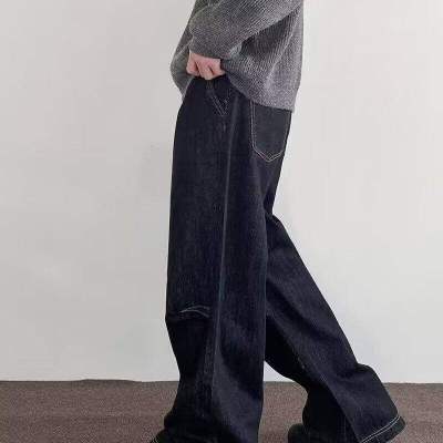 Internet pictures of trendy straight-leg loose denim trousers