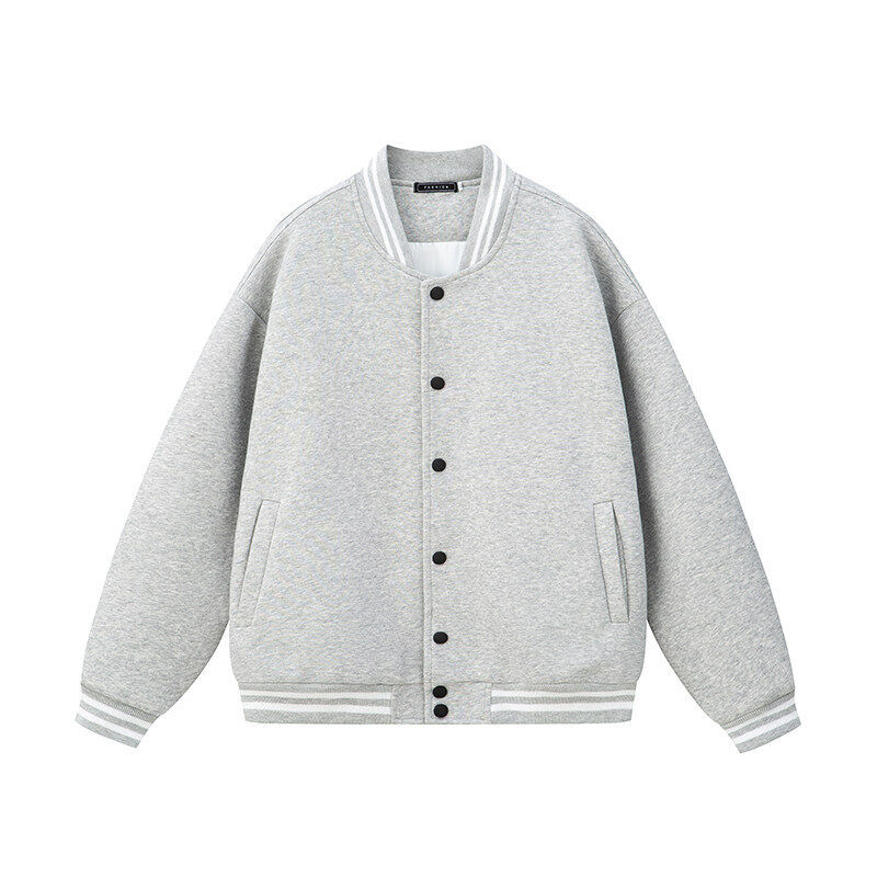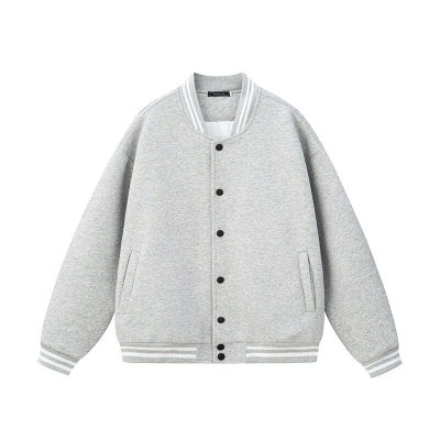440g cardigan solid color sweatshirt buttoned baseball jacket autumn and winter trendy men's cotton pullover jacket