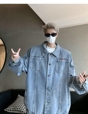 New Hong Kong style trendy denim jacket large size loose American denim jacket