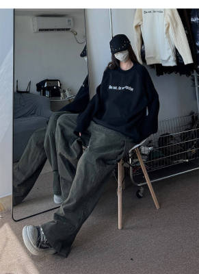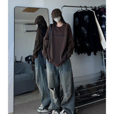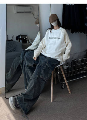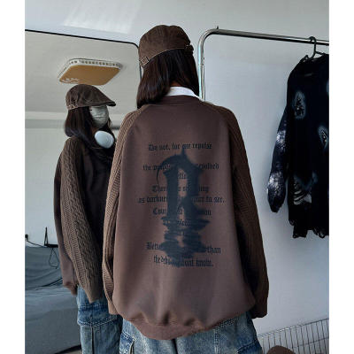 Autumn and winter plus velvet splicing sweaters, large size loose men's and women's knitted sweaters, American tops and jackets, trendy