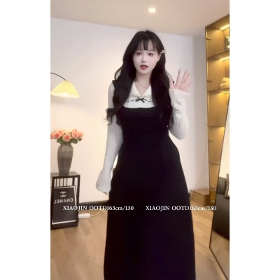Lovers are not yet full, slightly chubby mm, Hepburn style stitching and contrasting dress, slimming little black dress in autumn
