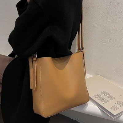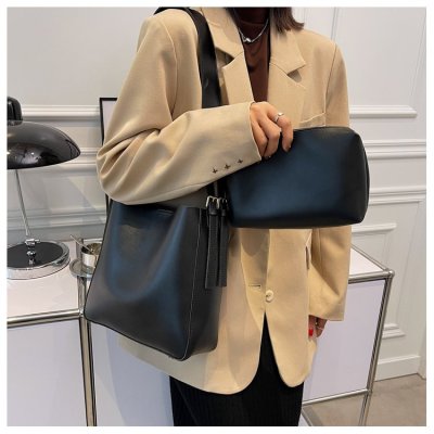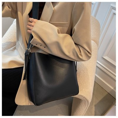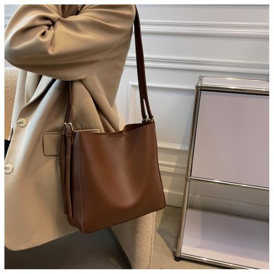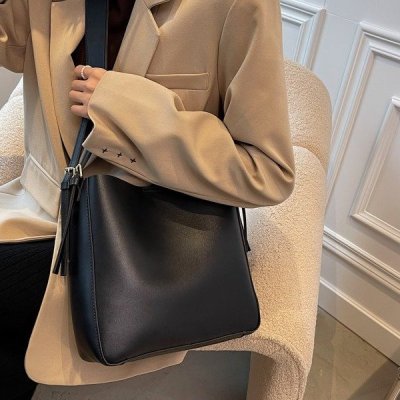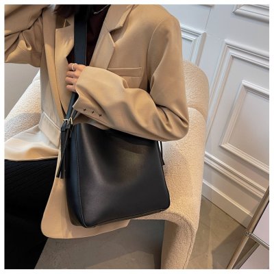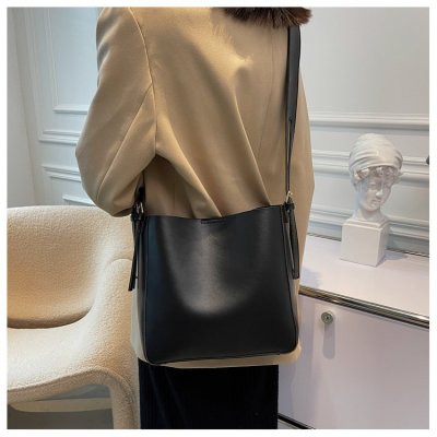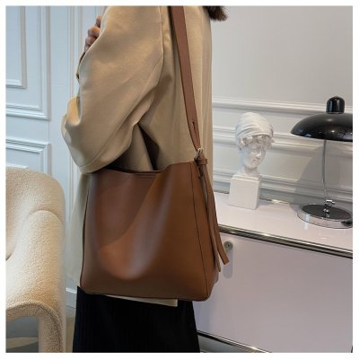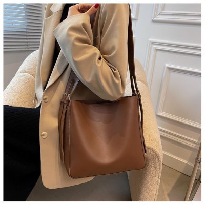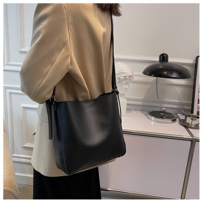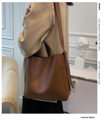 Cross-border soft surface large bag women's simple shoulder fashion large capacity commuter bag women's 2024 new bucket bag women