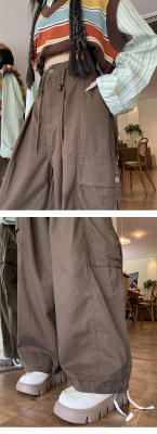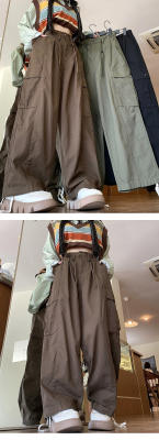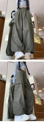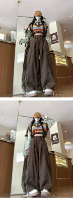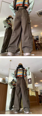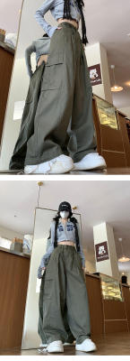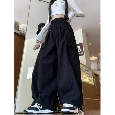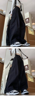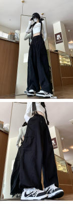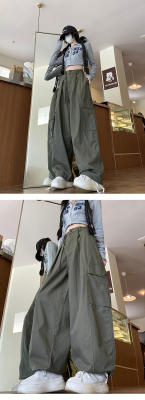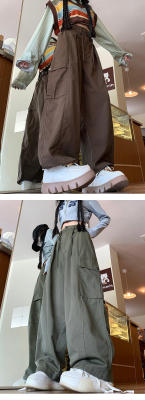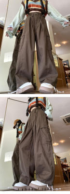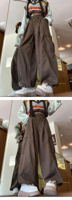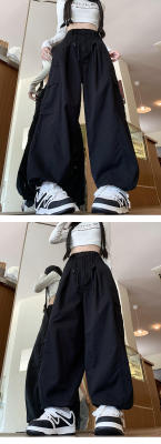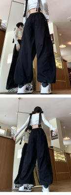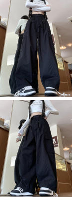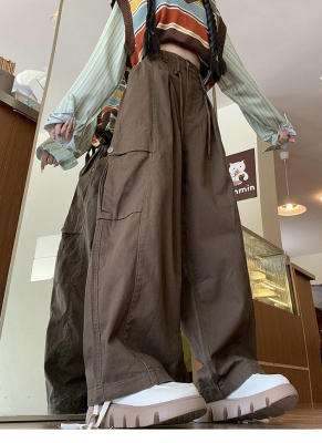 Overalls for men and women in spring and autumn trendy loose drawstring pants Hong Kong style trendy high street casual pants