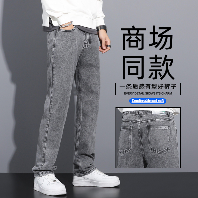 New men's straight-leg floor-length trousers, versatile gray jeans, wide-leg trousers #Black Bottom Gray Wall 2
