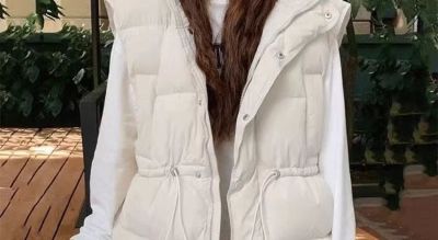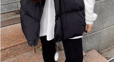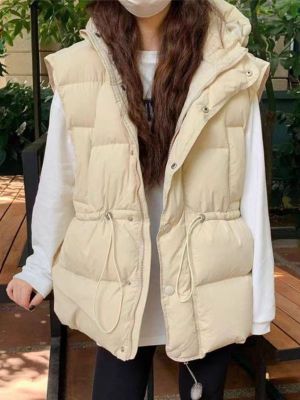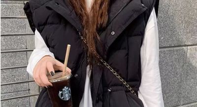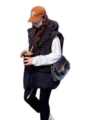 Fashionable down cotton coat, cotton coat and vest for women, 2024 winter loose hooded vest, western style thickened waistcoat