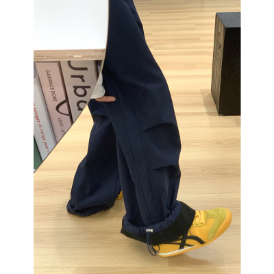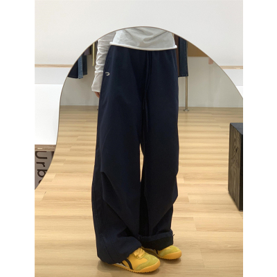 Plush American Retro Navy Blue High Waist Casual Pants Women's Loose Harajuku Style Casual Pants