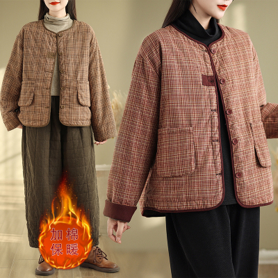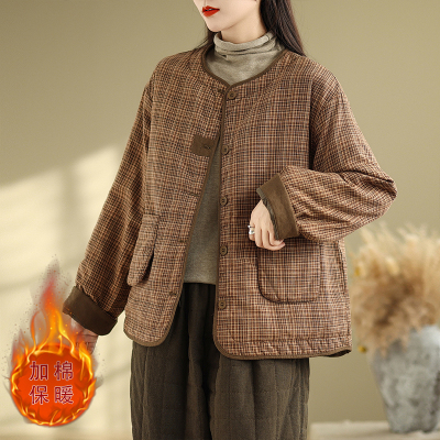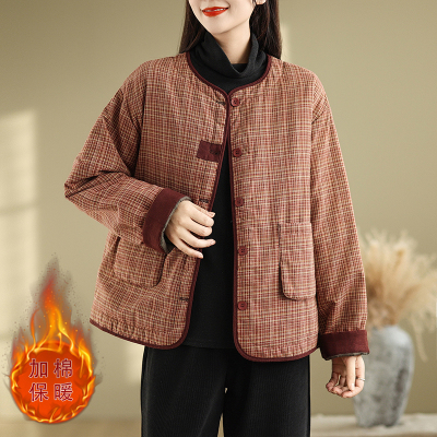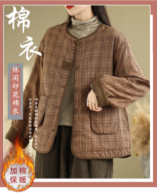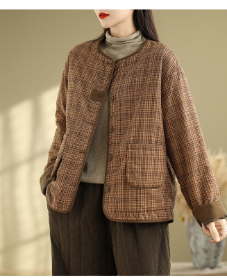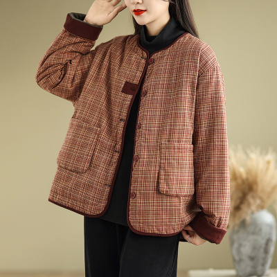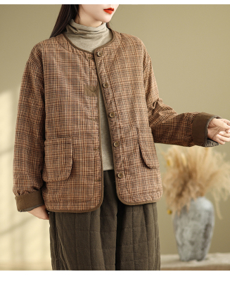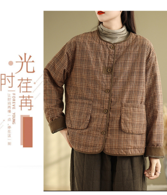 Loose casual age-reducing plaid fashionable temperament casual cotton coat