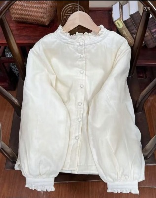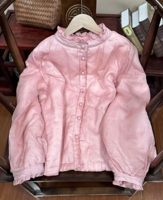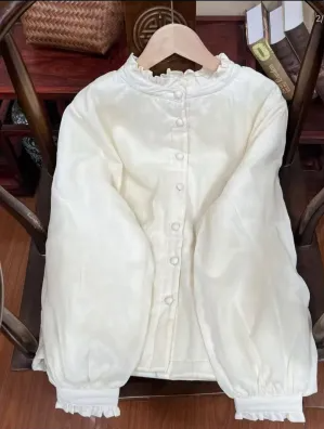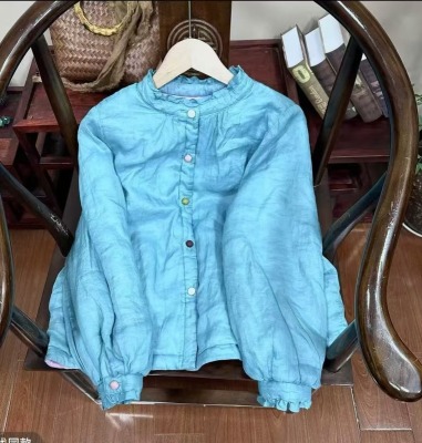 2024 Winter Literary Lace Cute Western Style Ramie and Cotton Versatile Cotton Clothes Solid Color
