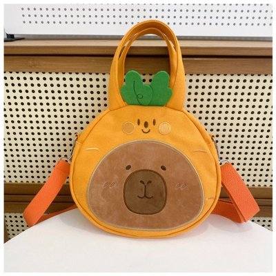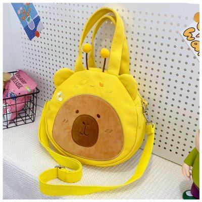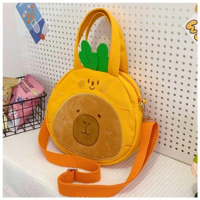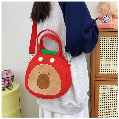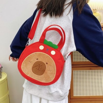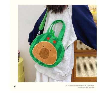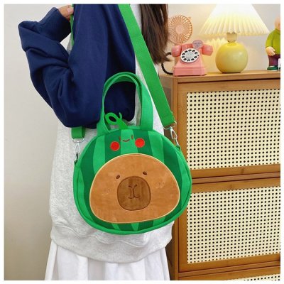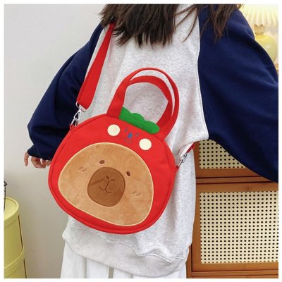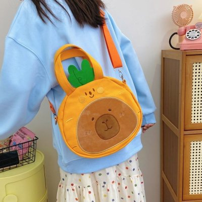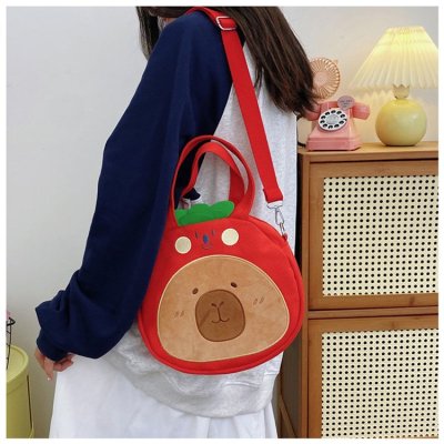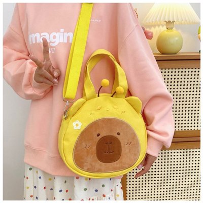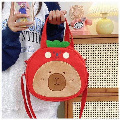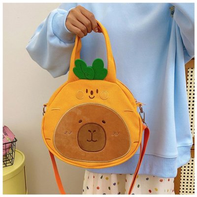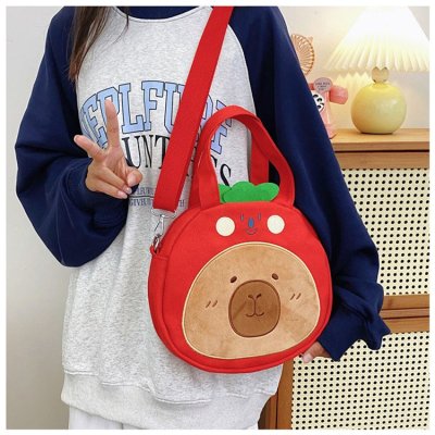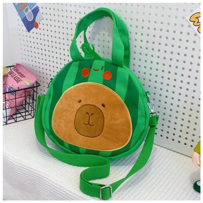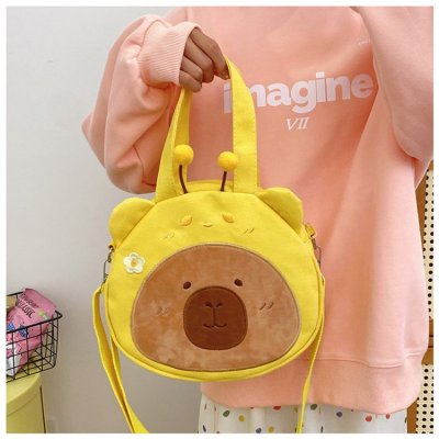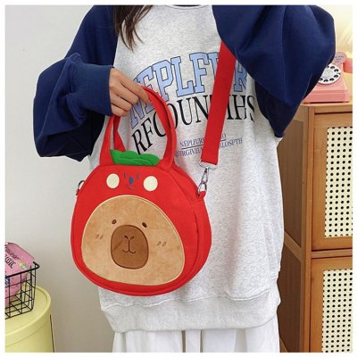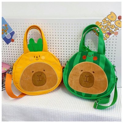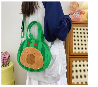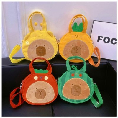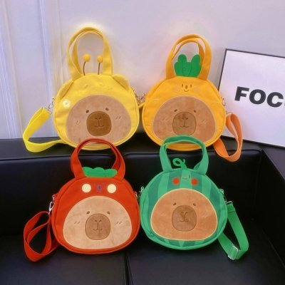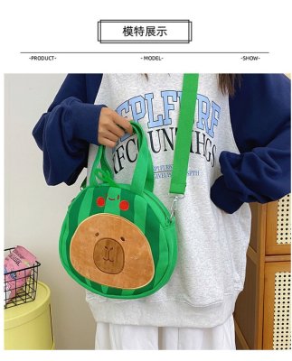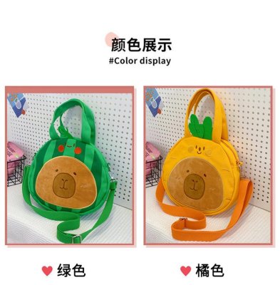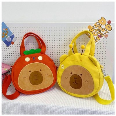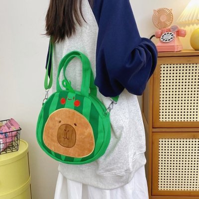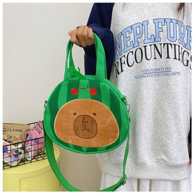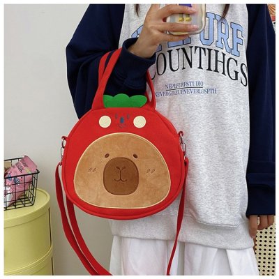 2024 New Biscuit Water Guinea Pig Capibala Doll Plush Cartoon Girls Contrast Color Stitching Crossbody Small Round Bag