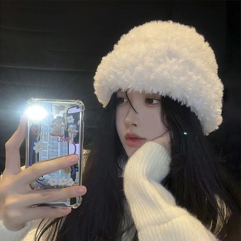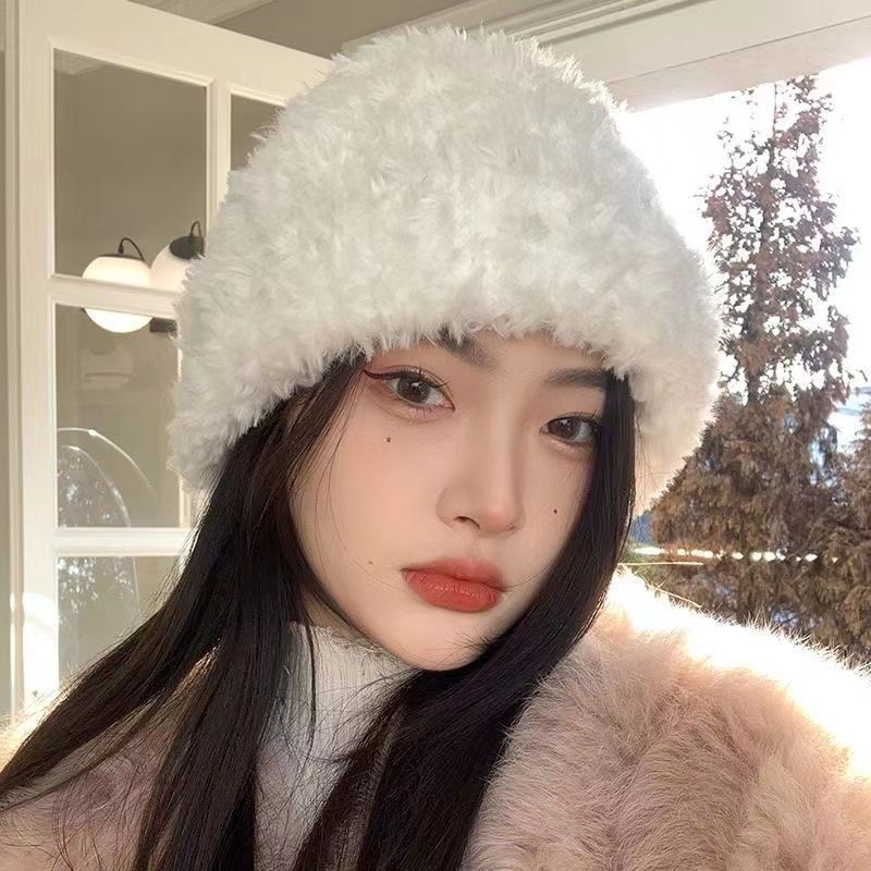 Hat Winter Furry Women's Knitted Beanie Hat Large Head Circumference Shows Face Small Thickened Warm Style Versatile Plush Hat