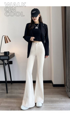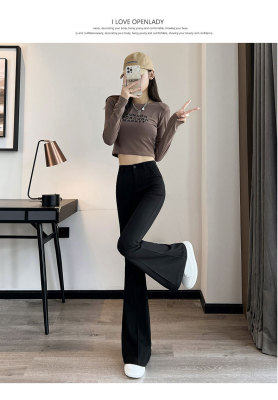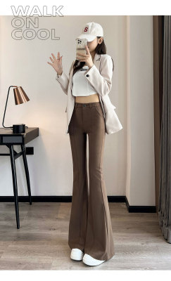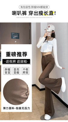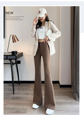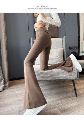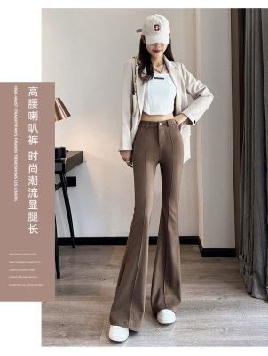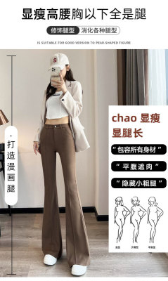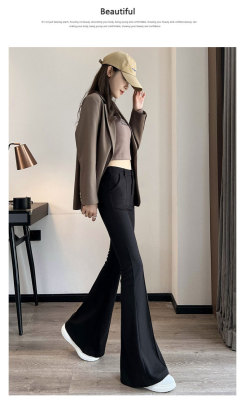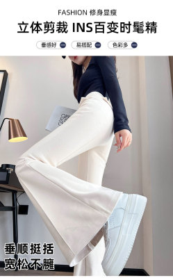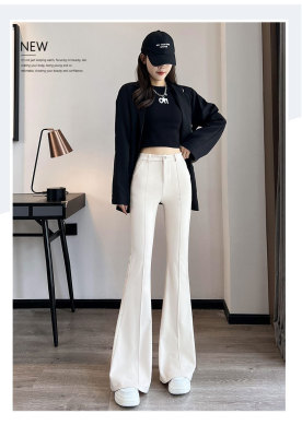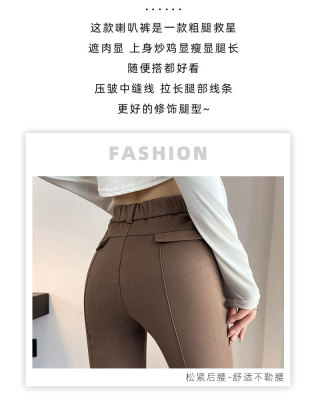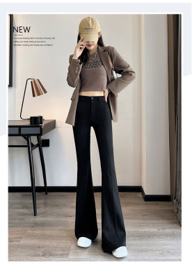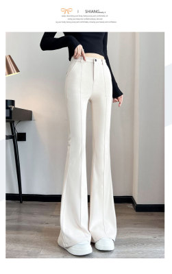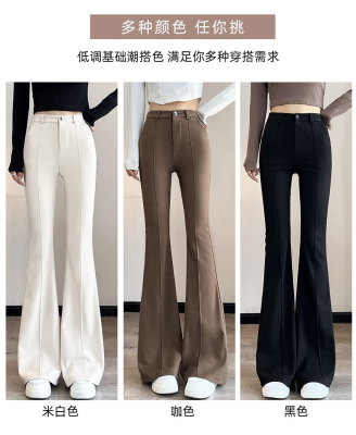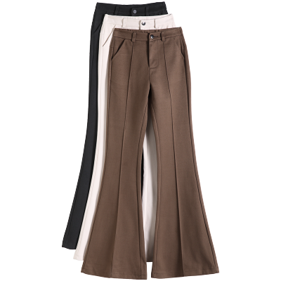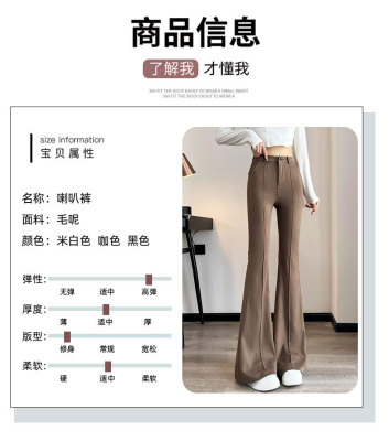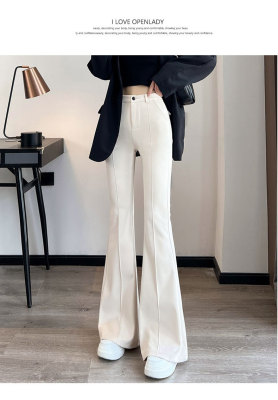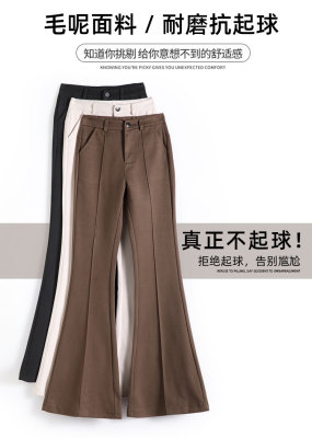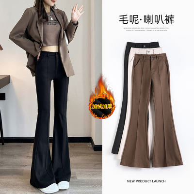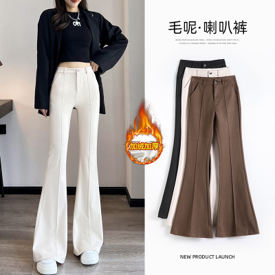 Thick velvet and drapey woolen boot-cut pants for women, versatile woolen slimming bell-bottom pants