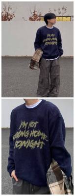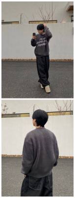Plush Mesh Lazy Sweater Heavyweight Crew Neck Sweater