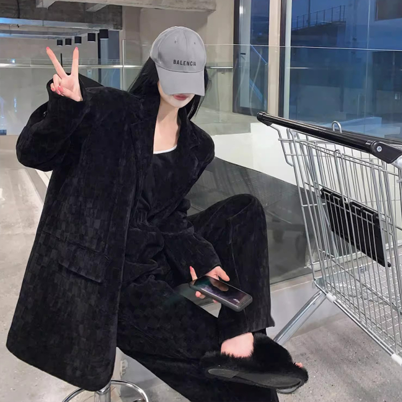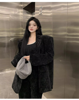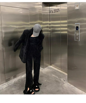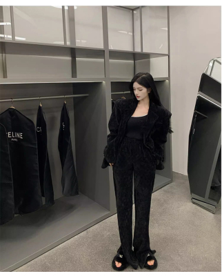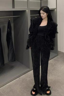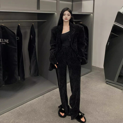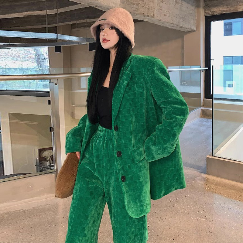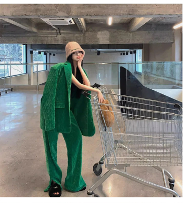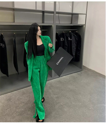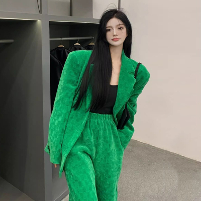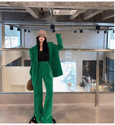 Spring new women's green thickened corduroy Yujie wide-leg pants suit suit two-piece set