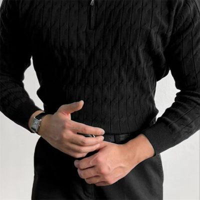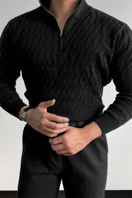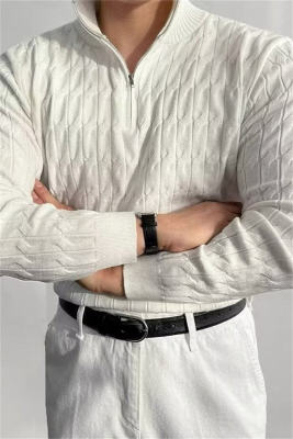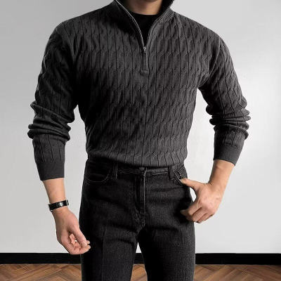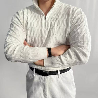 New autumn and winter high-end simple and versatile half turtleneck zipper sweater