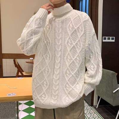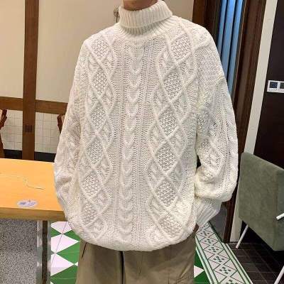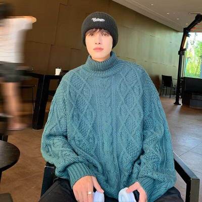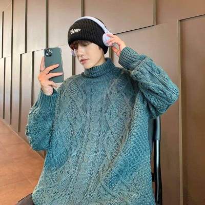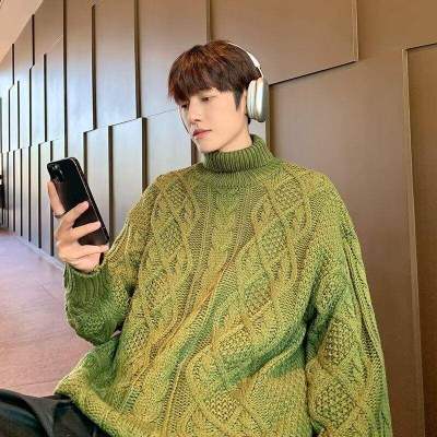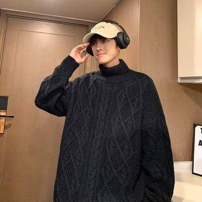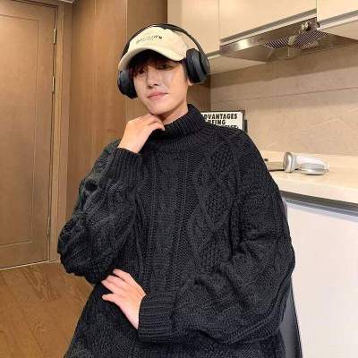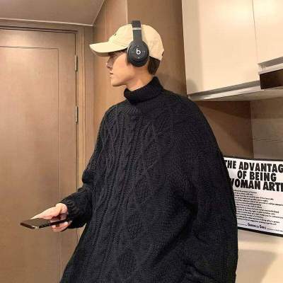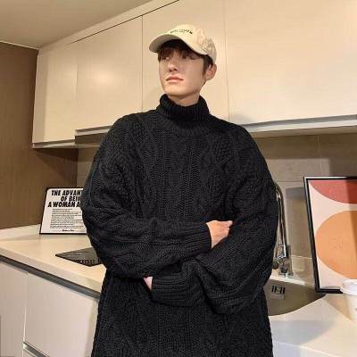 Twist turtleneck sweater for men, soft and waxy, lazy long collar woolen fashionable and versatile winter thickened trendy brand sweater