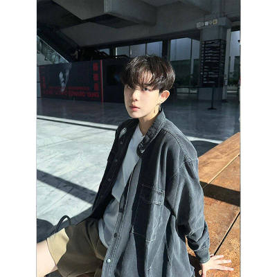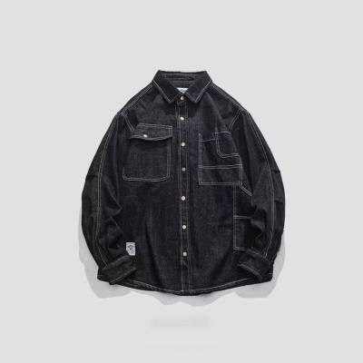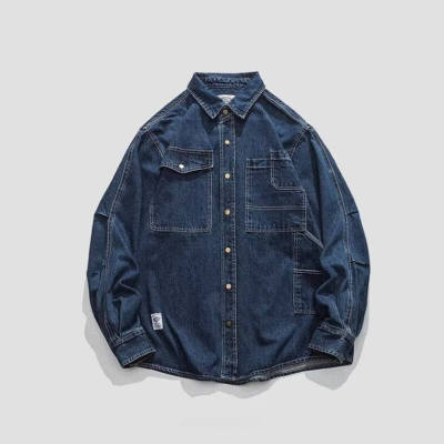 American retro multi-pocket denim shirt men's spring and autumn loose casual long-sleeved work shirt thin jacket