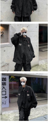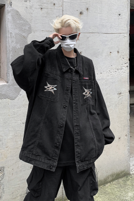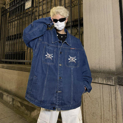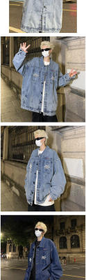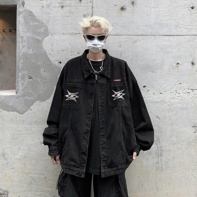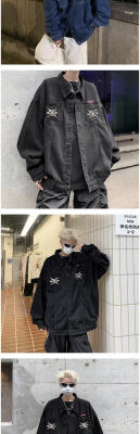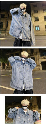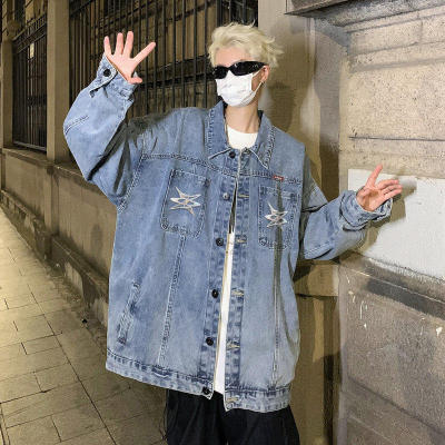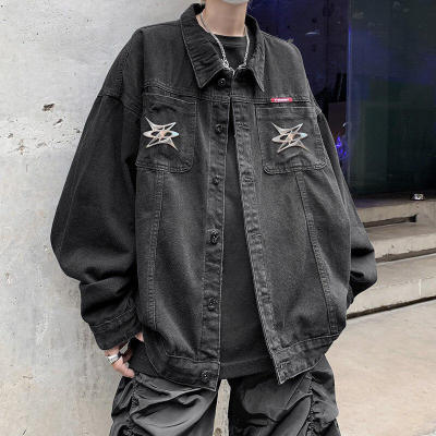 Men's Denim Jacket Autumn Geometric Pattern Print Lapel Jacket for Boys