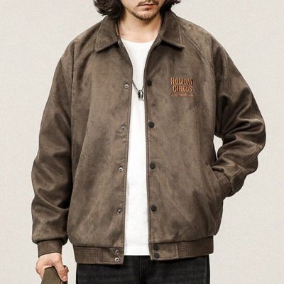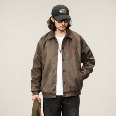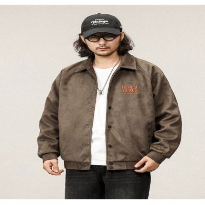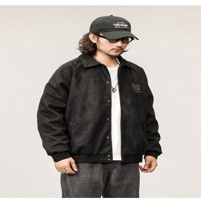 Buckskin Lapel Baseball Jacket Men's Loose Spring and Autumn 380g Heavy Air Layer Jacket