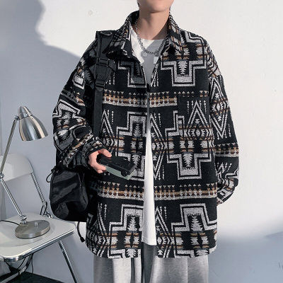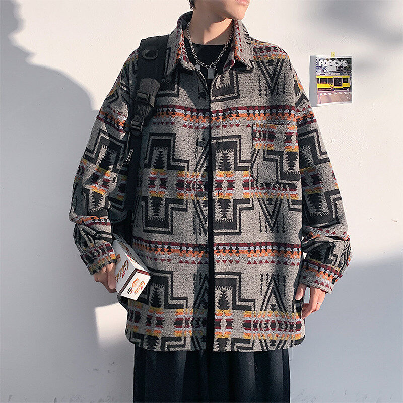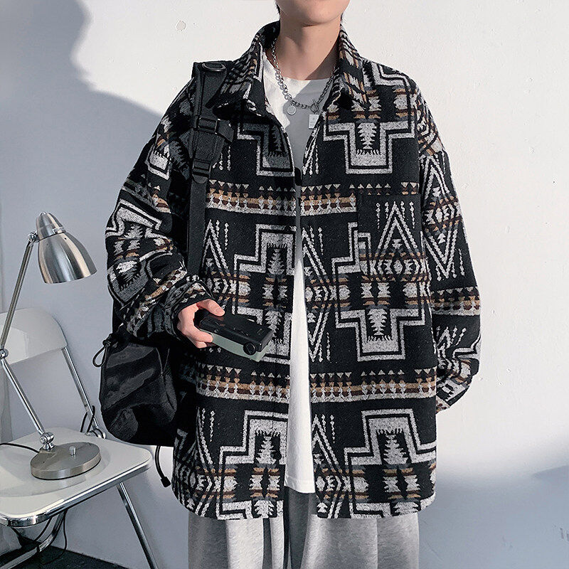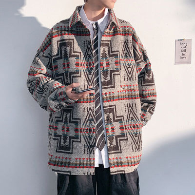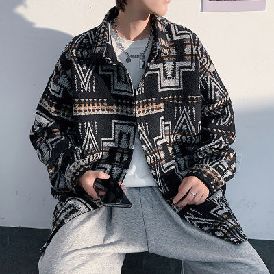 Woolen coat men's large size light and shadow white wall loose casual jacket