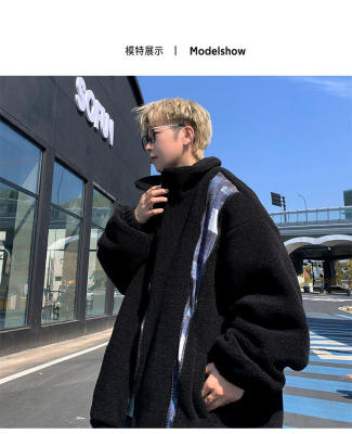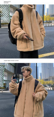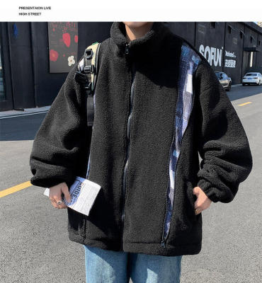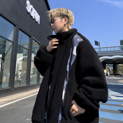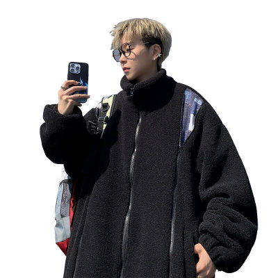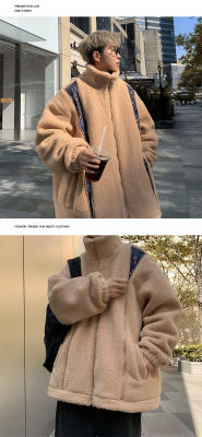Winter lamb velvet cotton coat men's Hong Kong style trendy loose thickened warm cotton jacket