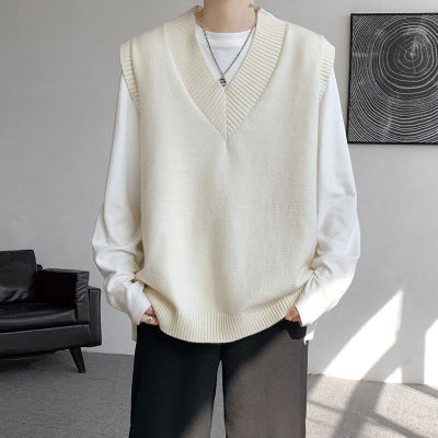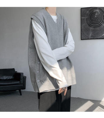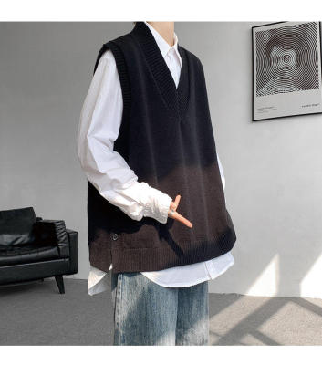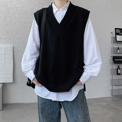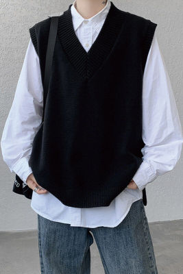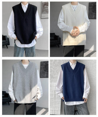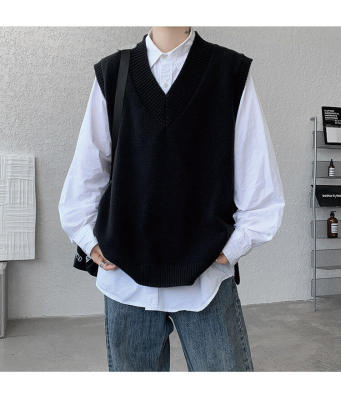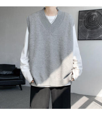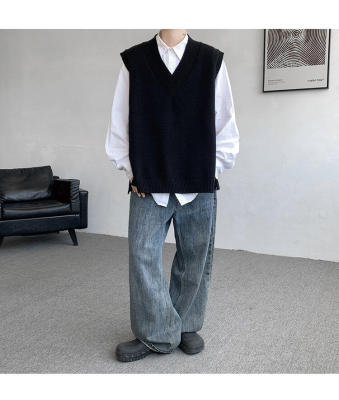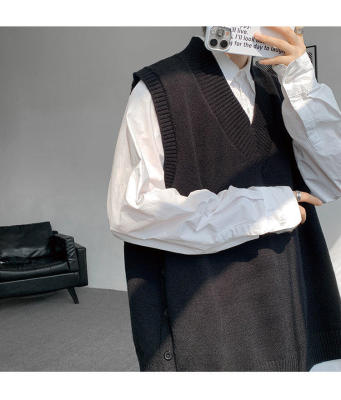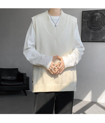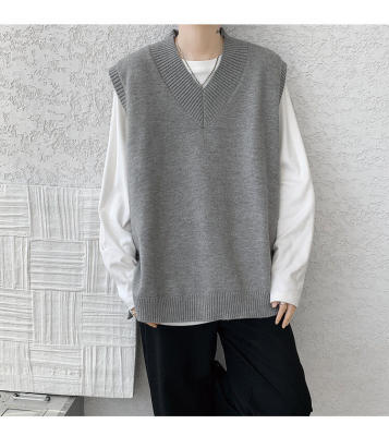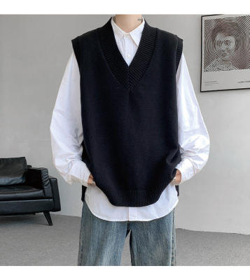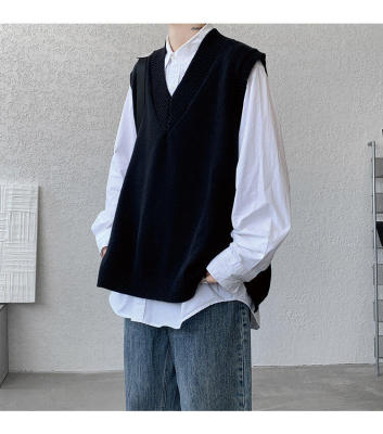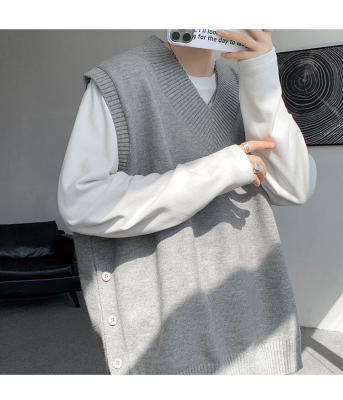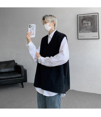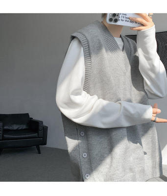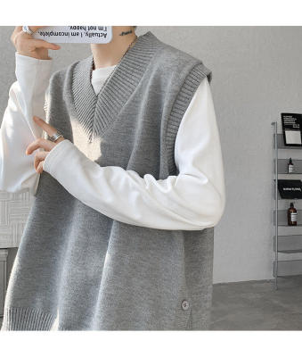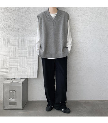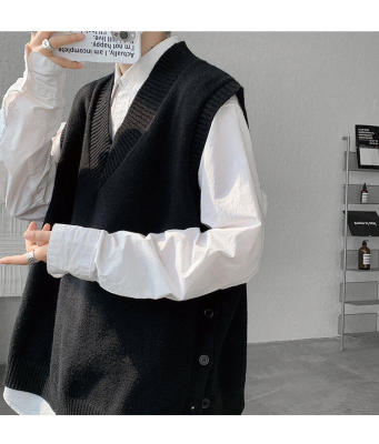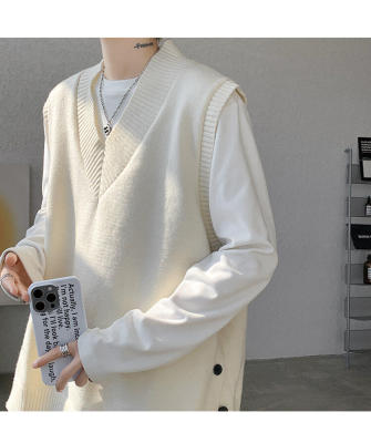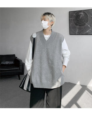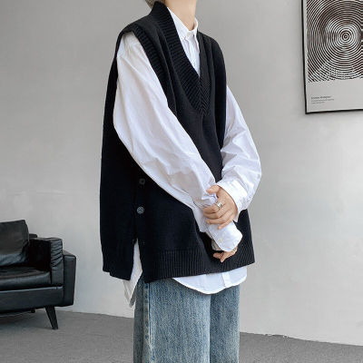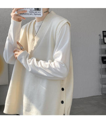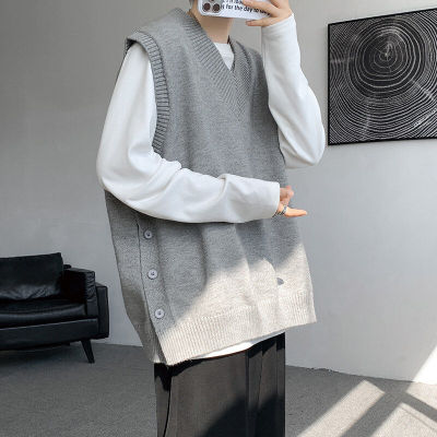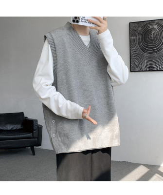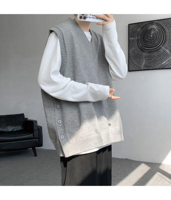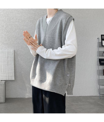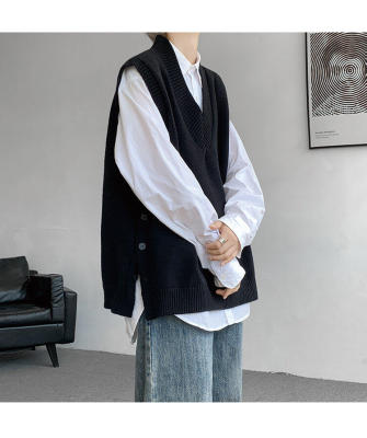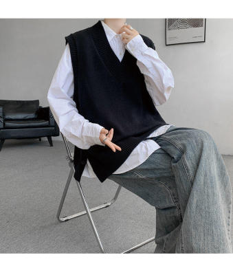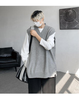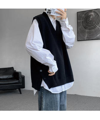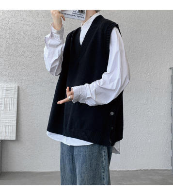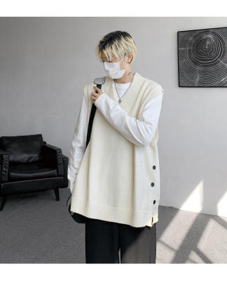 Knitted V-neck sweater vest side hem slit vest men's layered jacket Japanese style lazy waistcoat
