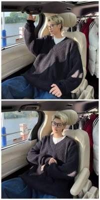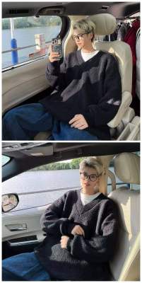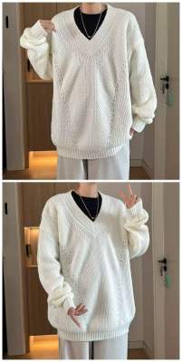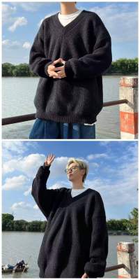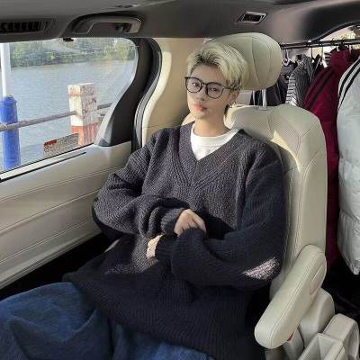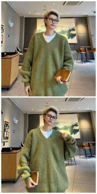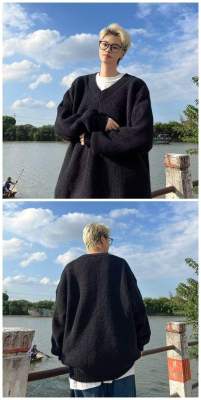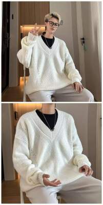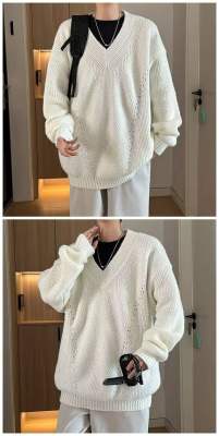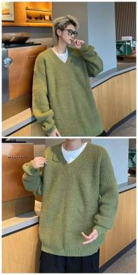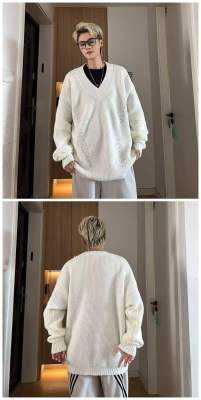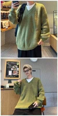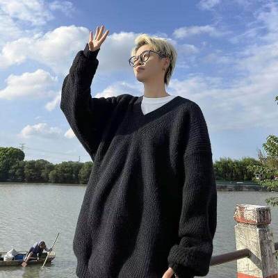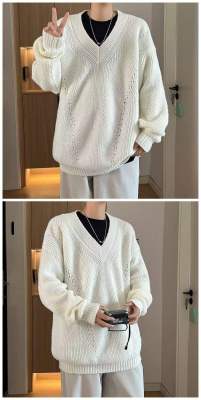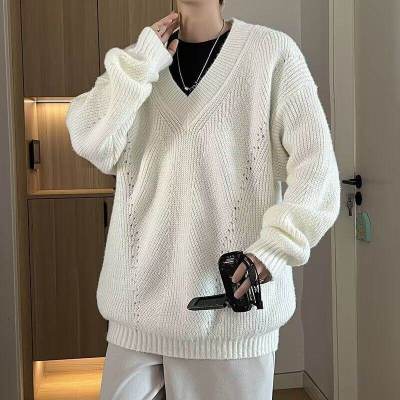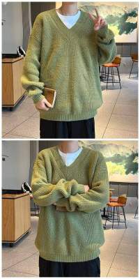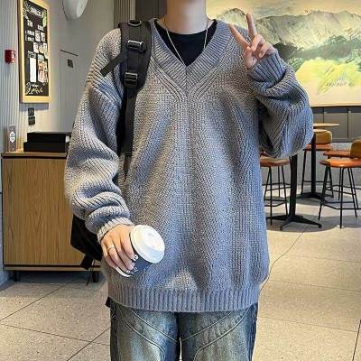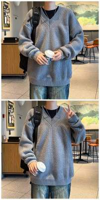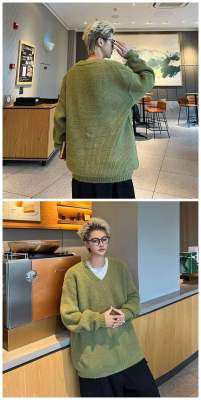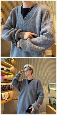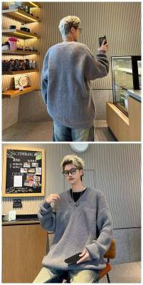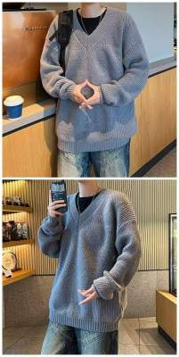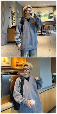 V-neck sweater men's autumn lazy style high-end top solid color trendy brand sweater jacket
