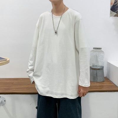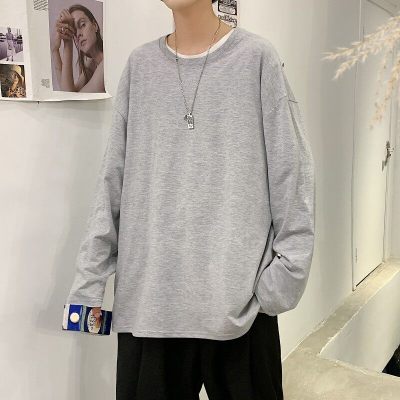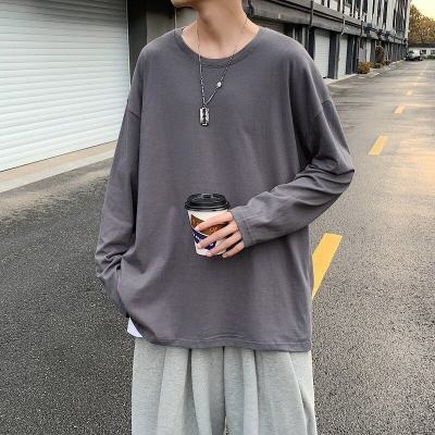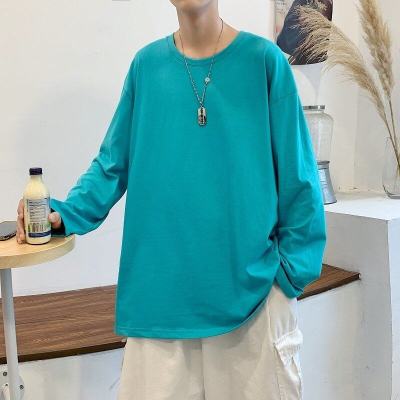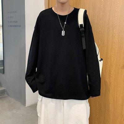 Long -sleeved T -shirt Men's Trend Hong Kong Wind Casual Top Loose Pure Color Inner Betting Fave