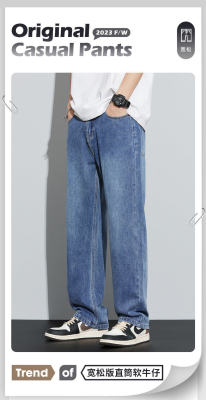 Variable loose straight jeans Men's retro fashion casual wide -leg pants