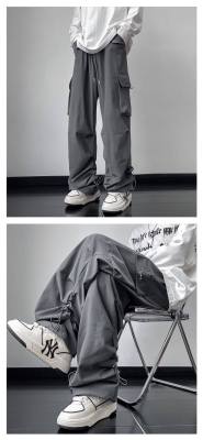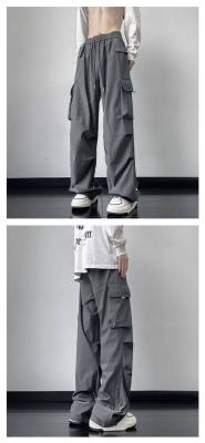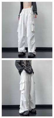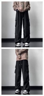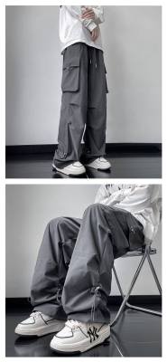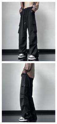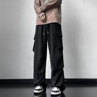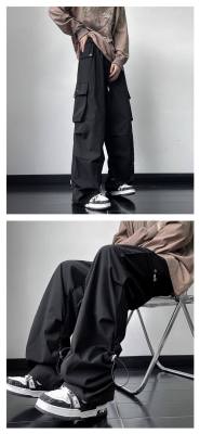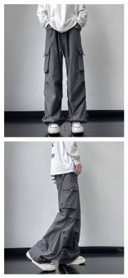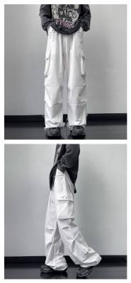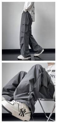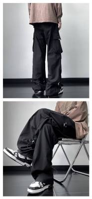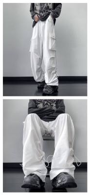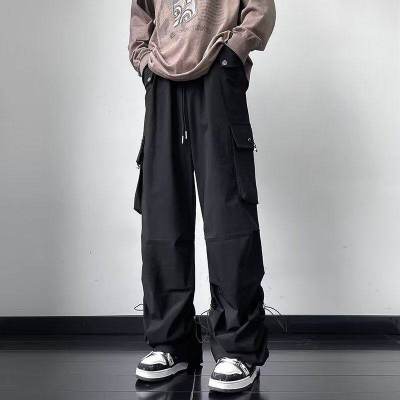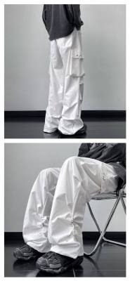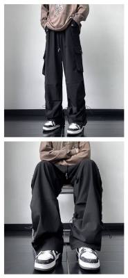 Wide brand dress pants male retro -high street loose casual pants functional wind pumping rope foot trousers