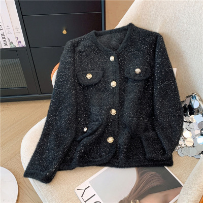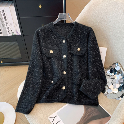 Small fragrance shiny long-sleeved jacket for women's autumn new retro high-end fashion loose