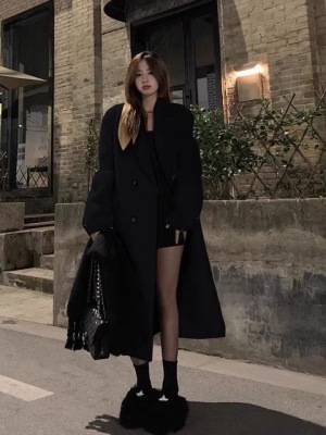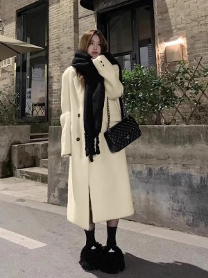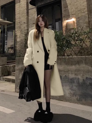 New style lazy Hepburn style over the knees, super long and versatile fashion retro tweed jacket