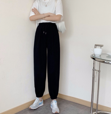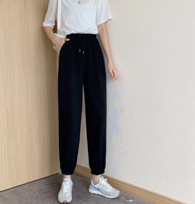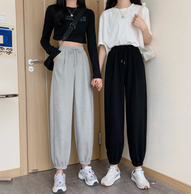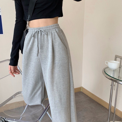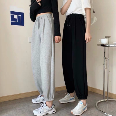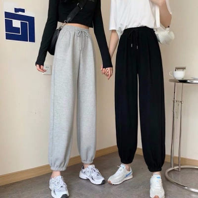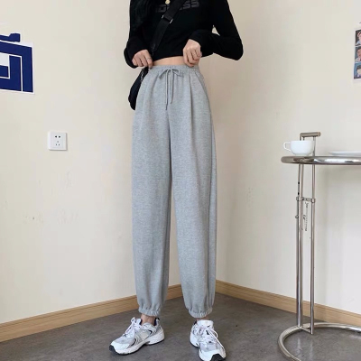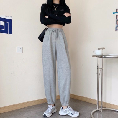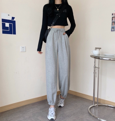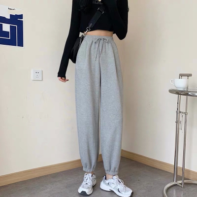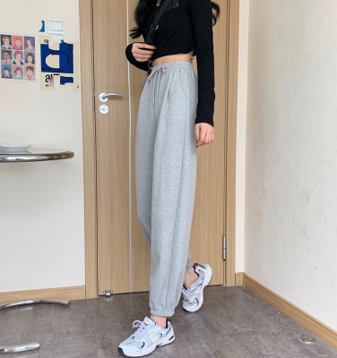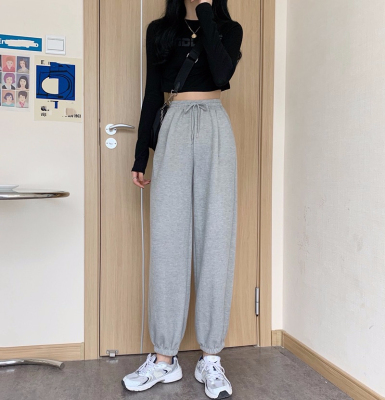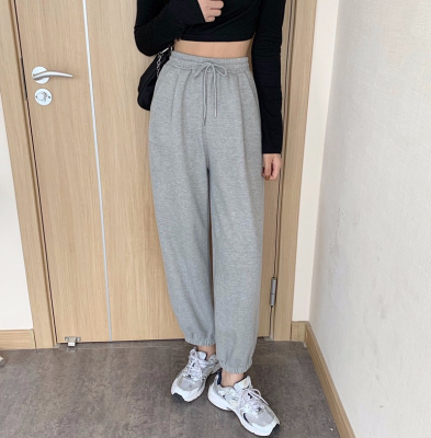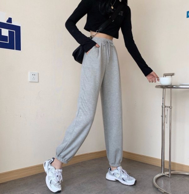 Fish scales high waist sports pants for women loose feet spring and autumn students gray casual pants for women marquis