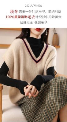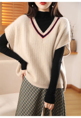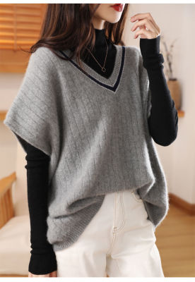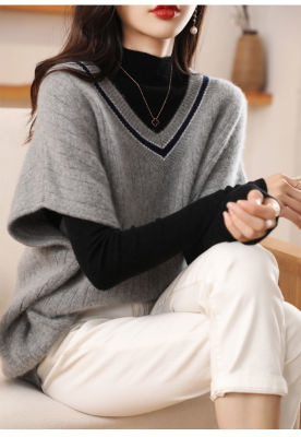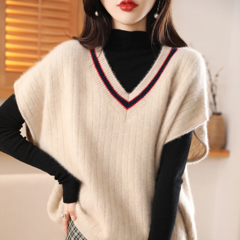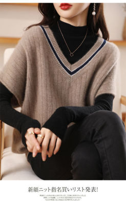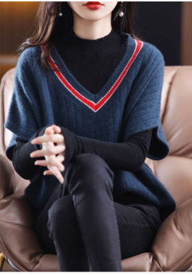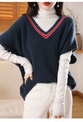 Women's new bat vest contrasting color V-neck autumn and winter thickened knitted vest base sweater women
