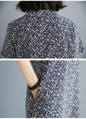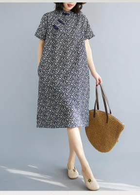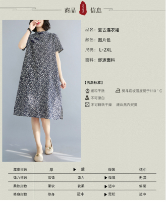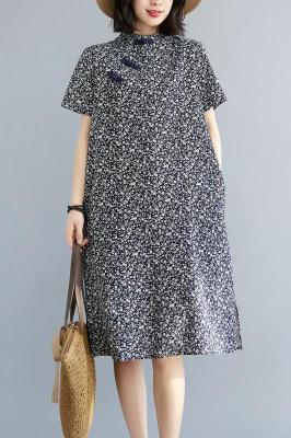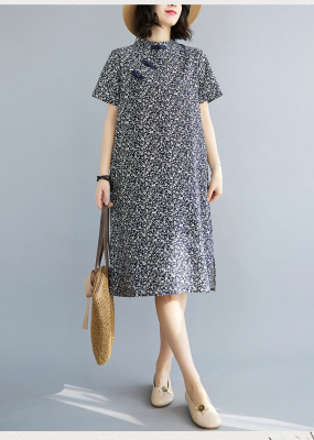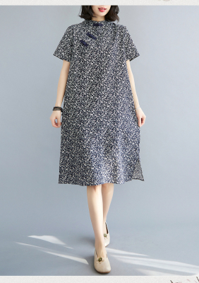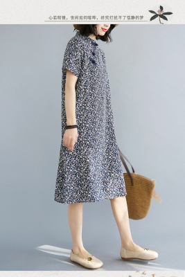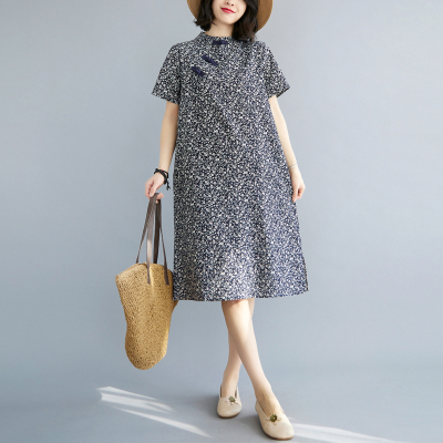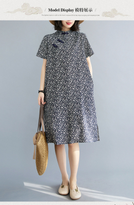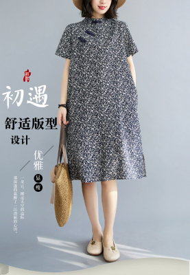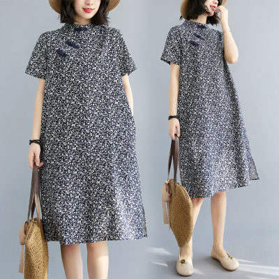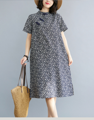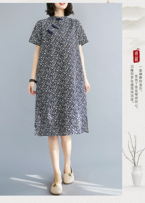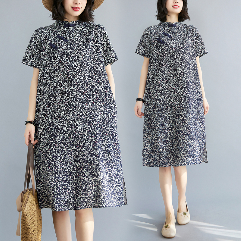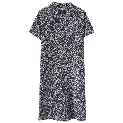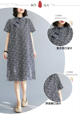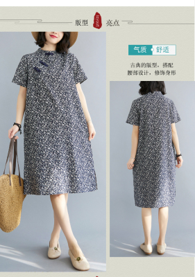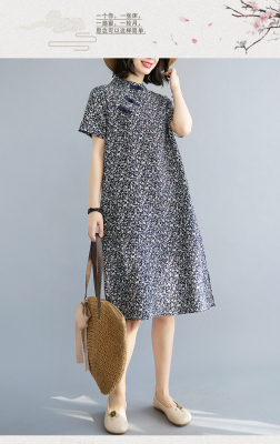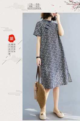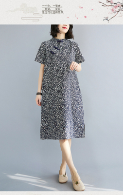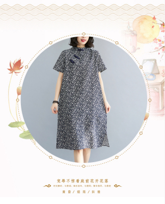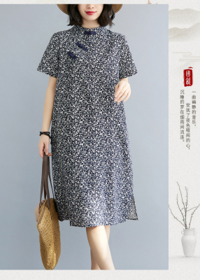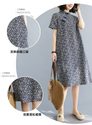 Real shot of summer retro Chinese style modified cheongsam loose mid-length dress for women