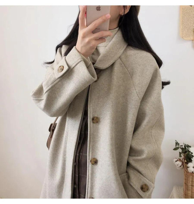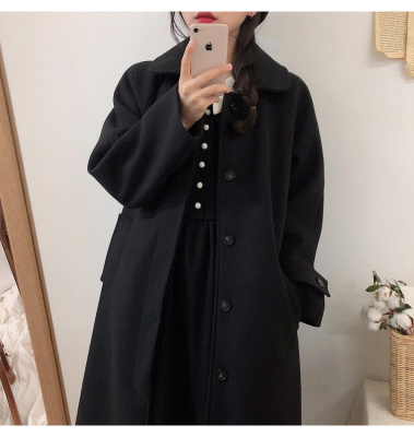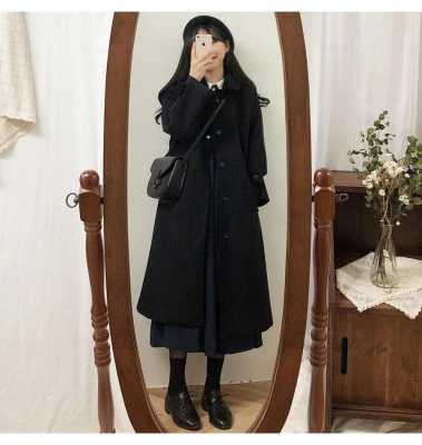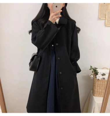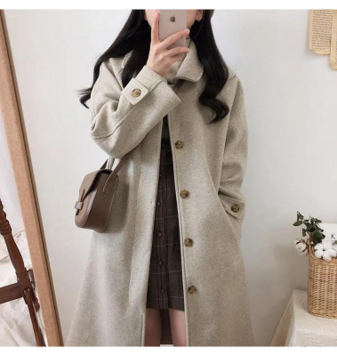 Student woolen coat for women's mid-length autumn and winter new Korean version loose slim and thickened knee woolen coat
