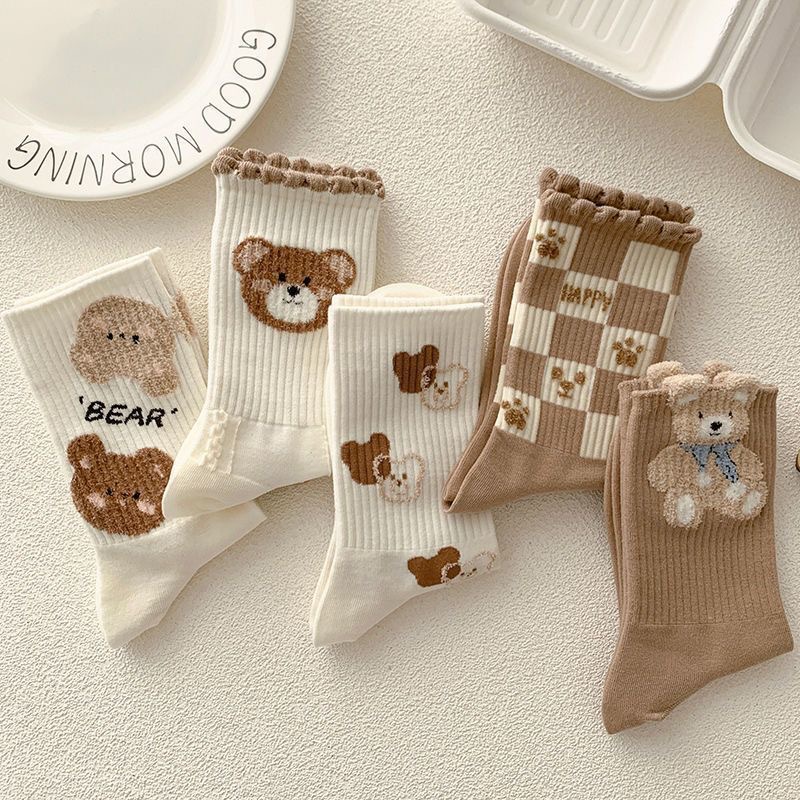 Cute socks for women bow-tie yarn medium socks ins Korean cartoon bear Japanese color dots
