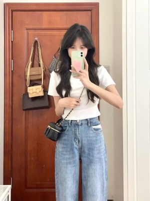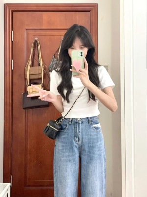 Front shoulder T-shirt short-sleeved women's summer new style bottoming solid color small person unique white inner short top