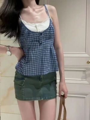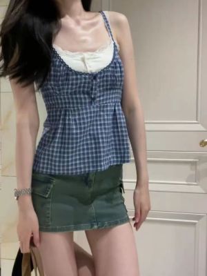 Women's vest, summer sweet shirt, outerwear, sweet and hot girl fake two-piece top