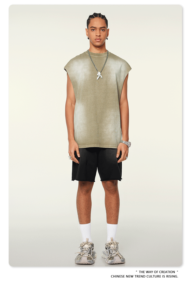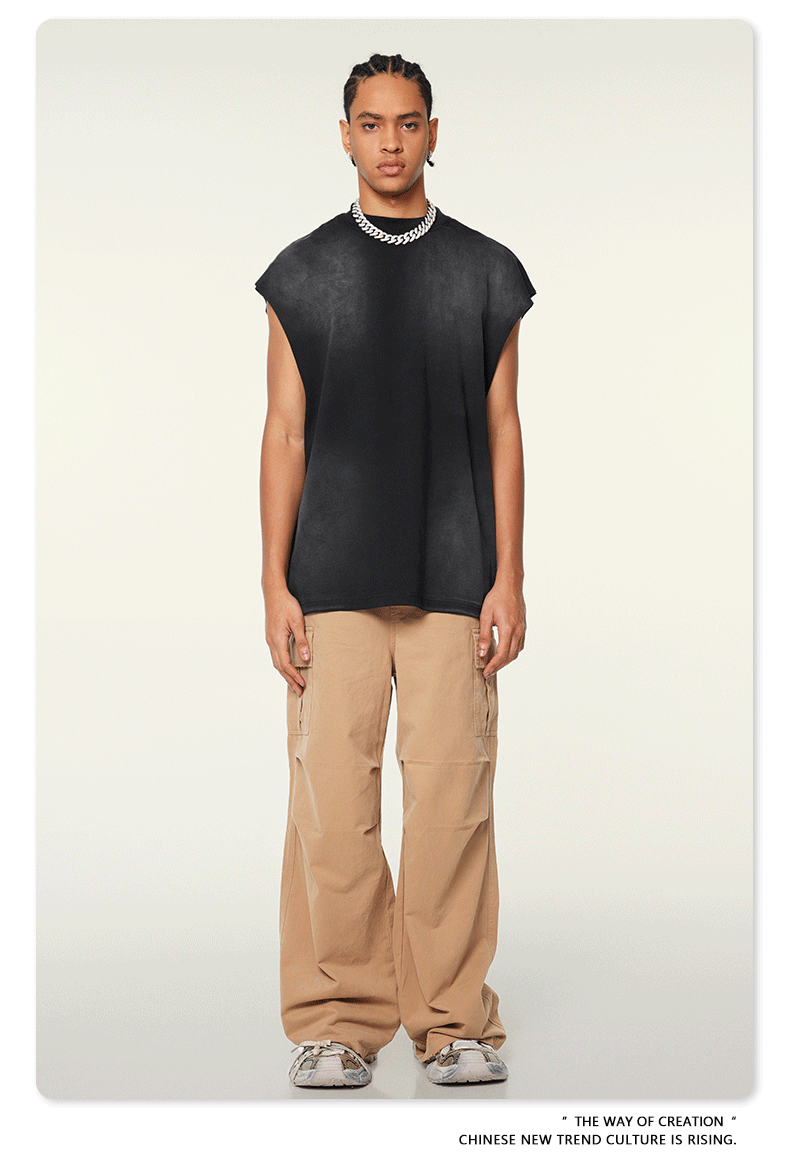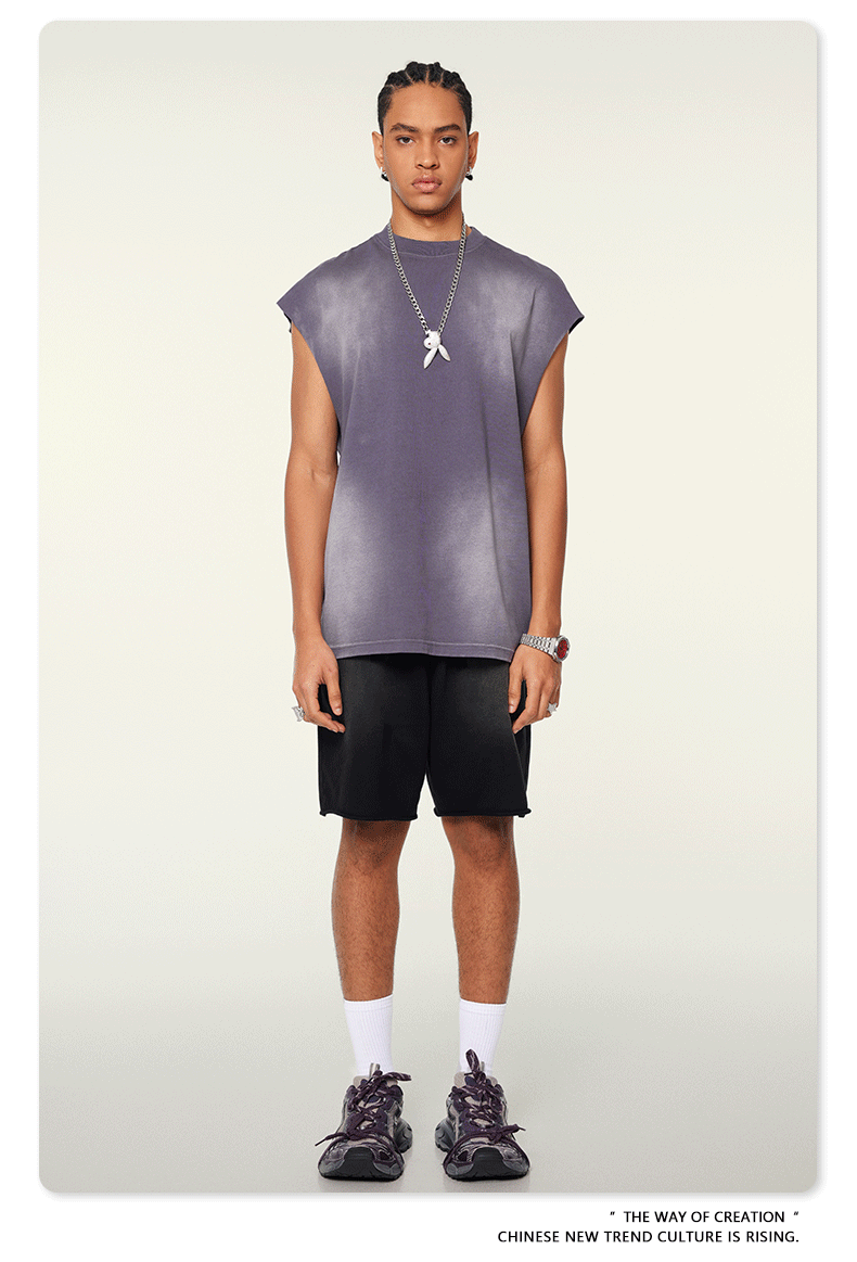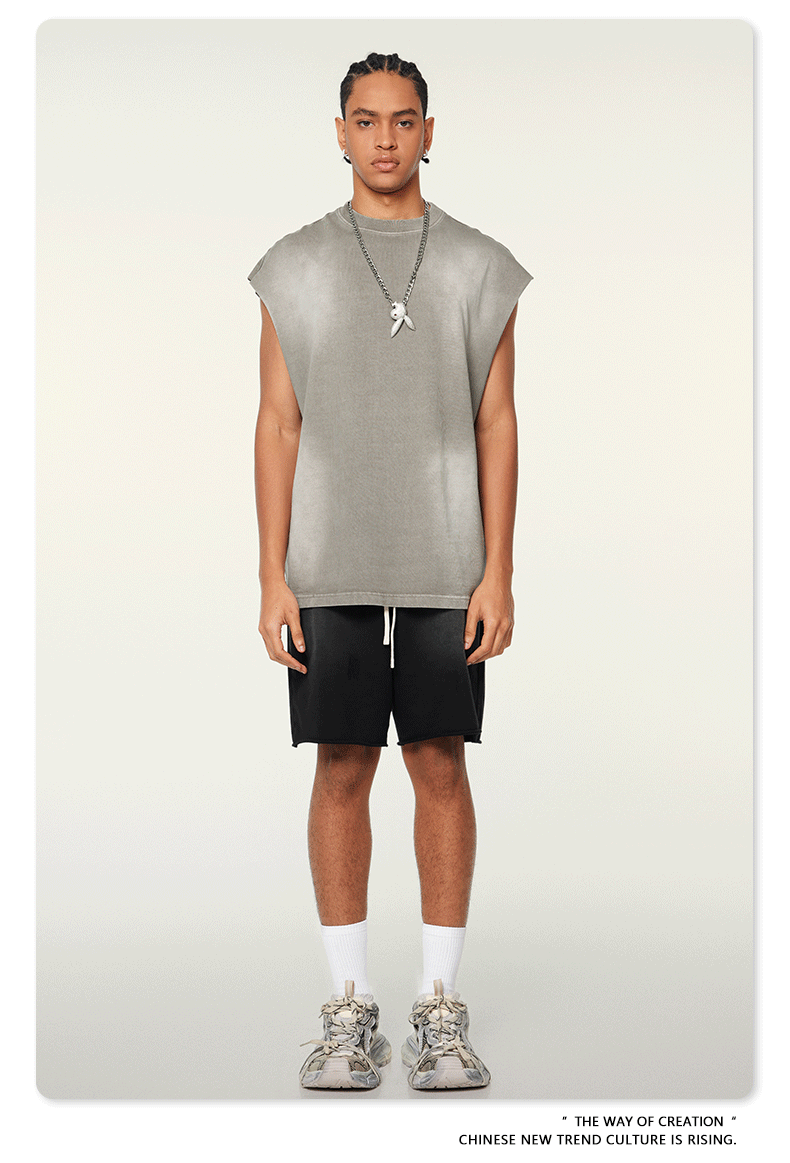 BE men's clothing 2025 spring and summer European and American sports furry vest men's trendy brand street washing loose side vest vest men