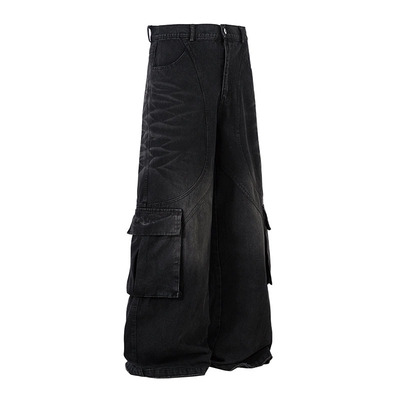 TKPA原創暗黑系高街潮牌男裝闊腿牛仔褲美式復古多口袋工裝褲男女