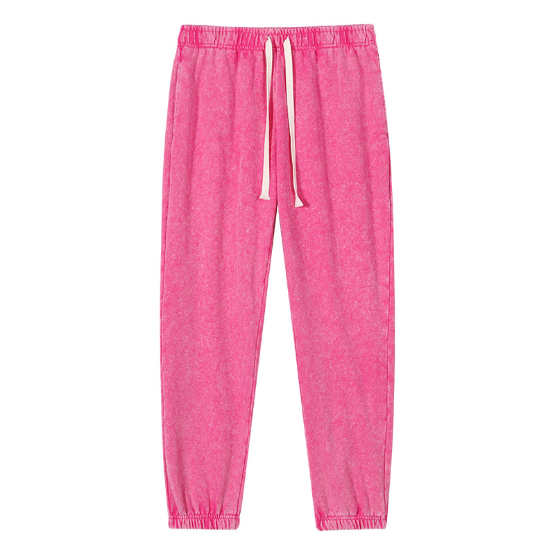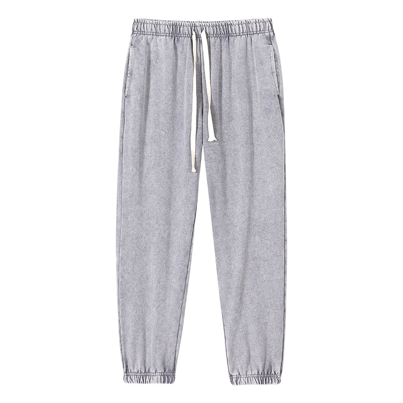 Heavyweight American-style distressed washed long pants, trendy plus-size pants, elastic waist loose casual sporty sweatpants