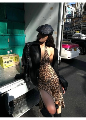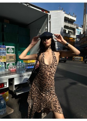 豹紋掛脖裙