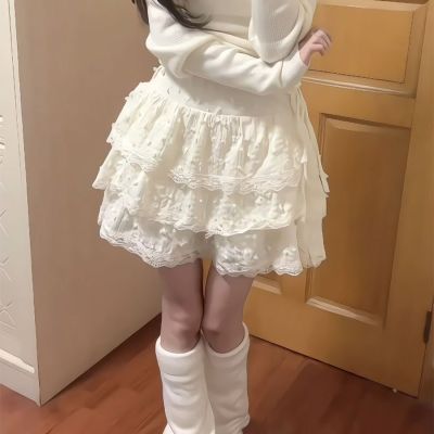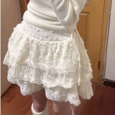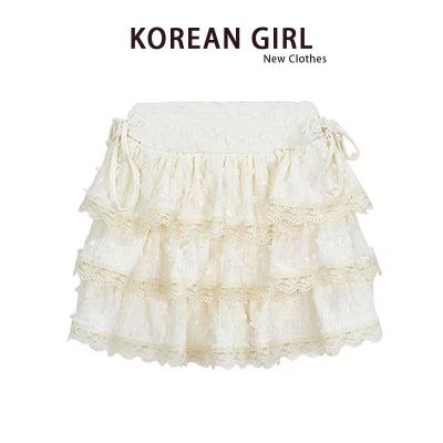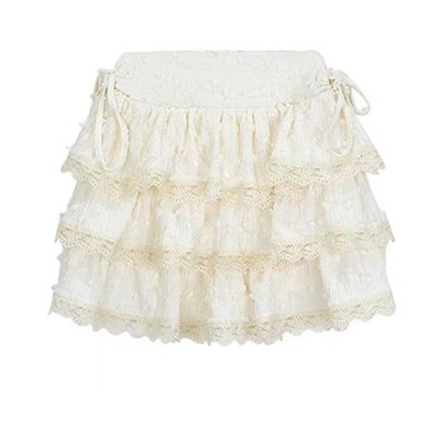 Sweet hot girl cream yellow soft girl summer new Japanese small lace cake skirt loli puffy skirt versatile